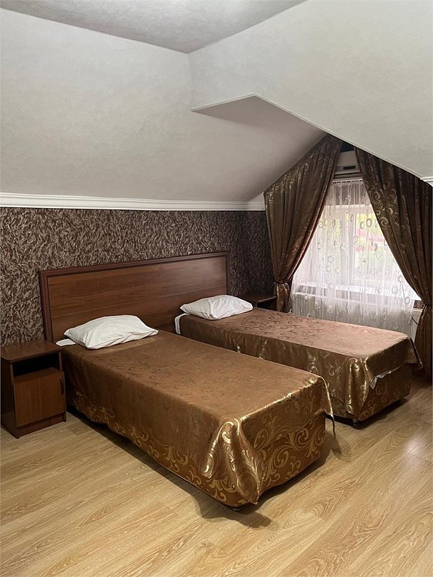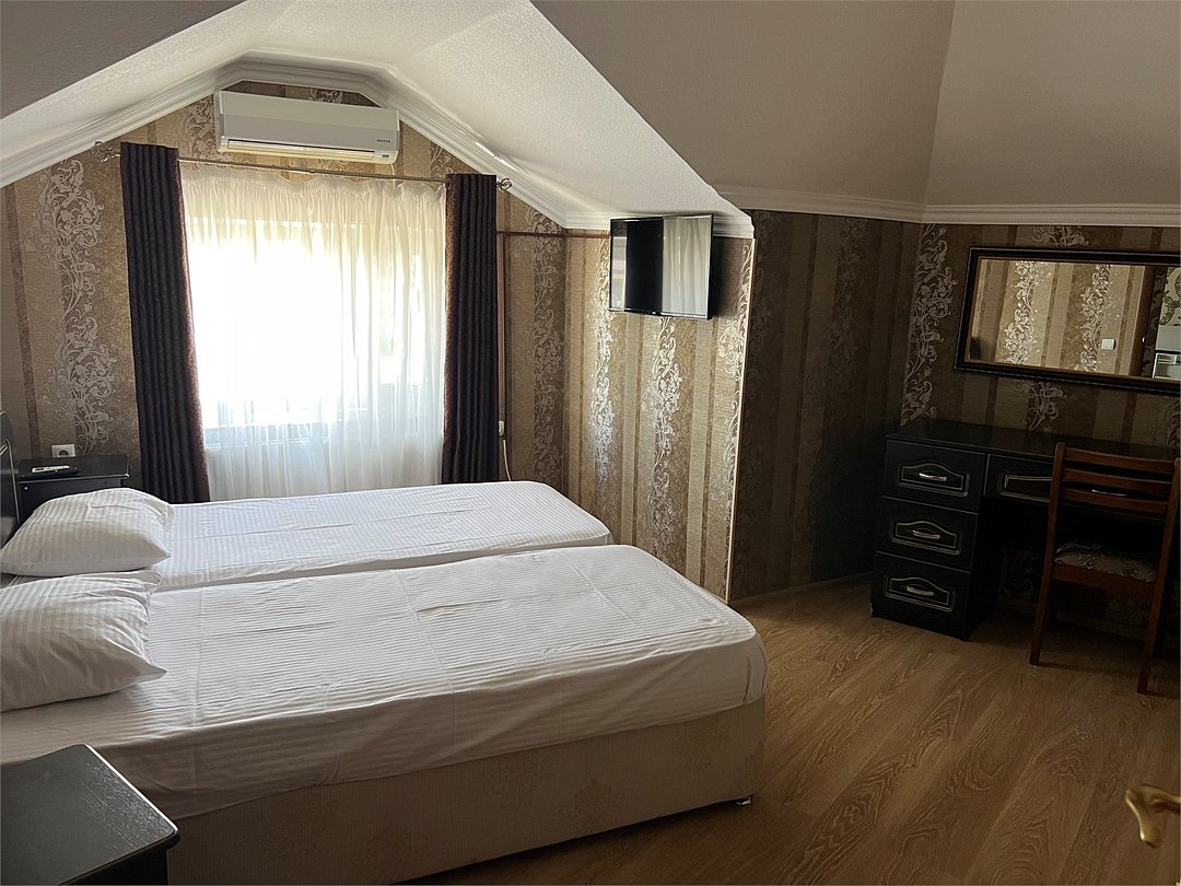 Двухкомнатный номер с большой двуспальной кроватью и раскладным диваном. Душ, туалет, раковина, мини-холодильник, в каждой комнате установлена сплит-система. На всей территории отеля работает WI-FI.Услуги и удобства