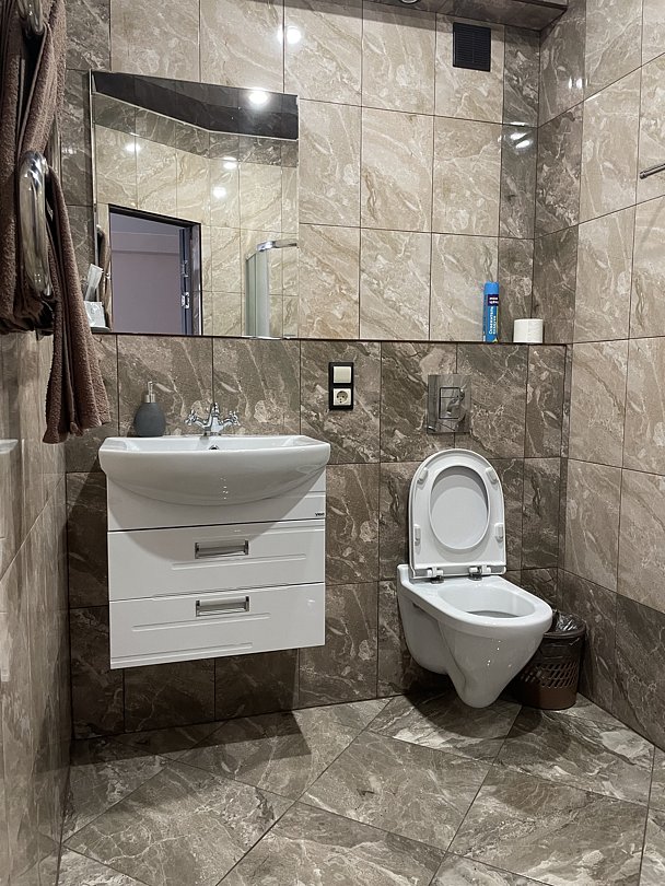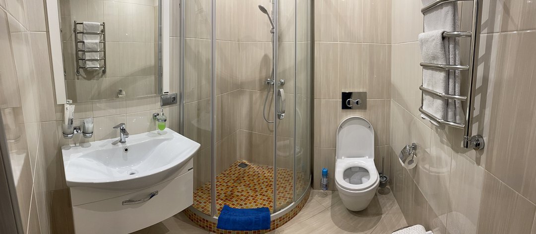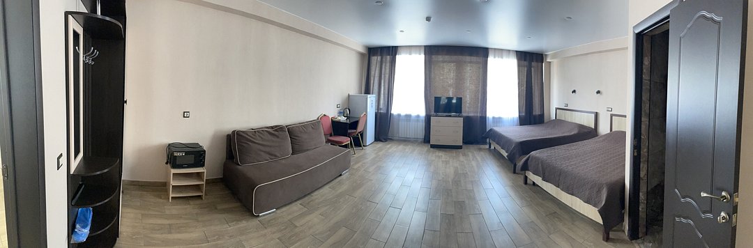 Двуспальная кровать, диван (дополнительное место), телевизор, Wi-Fi, набор для чая и кофе, холодильник, санузел, душевая кабина, бесплатный туалетно-косметические принадлежности, предоставляется фен.