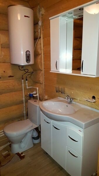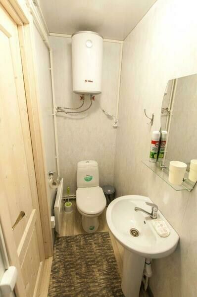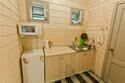 Двухэтажный коттедж с гостиной-столовой и 2-мя спальными комнатами. На первом этаже гостиная с раскладывающимся двуспальным диваном и телевизором со спутниковым телевидением, обеденным столом и кухонным уголком, в котором есть полноценный холодильник, мультиварка, микроволновая печь, чайник, достаточное количество посуды и столовых приборов. Туалетная комната оборудована душевой кабиной, раковиной с зеркалом, унитазом. На втором этаже 2 спальные комнаты с кроватями и тумбочками. В одной двуспальная, а в другой полутороспальные кровати. Постельное белье, тапочки, полотенца, фен, мыло и шампуни предоставляются. На кухню и в туалетную комнату подаются холодная и горячая вода. Предусмотрено центральное отопление. Бесплатно доступен интернет Wi-Fi.