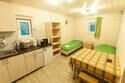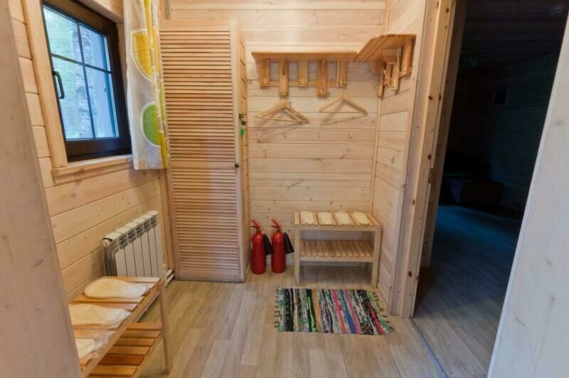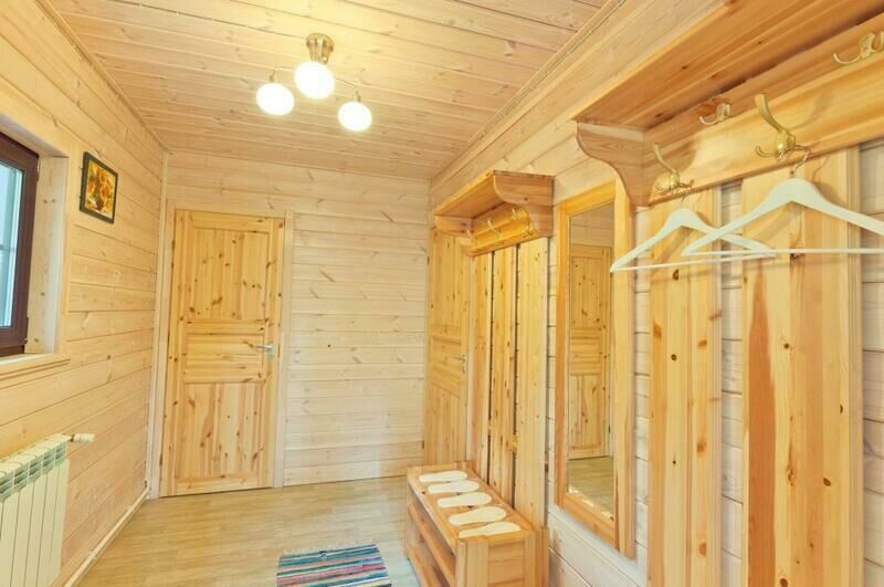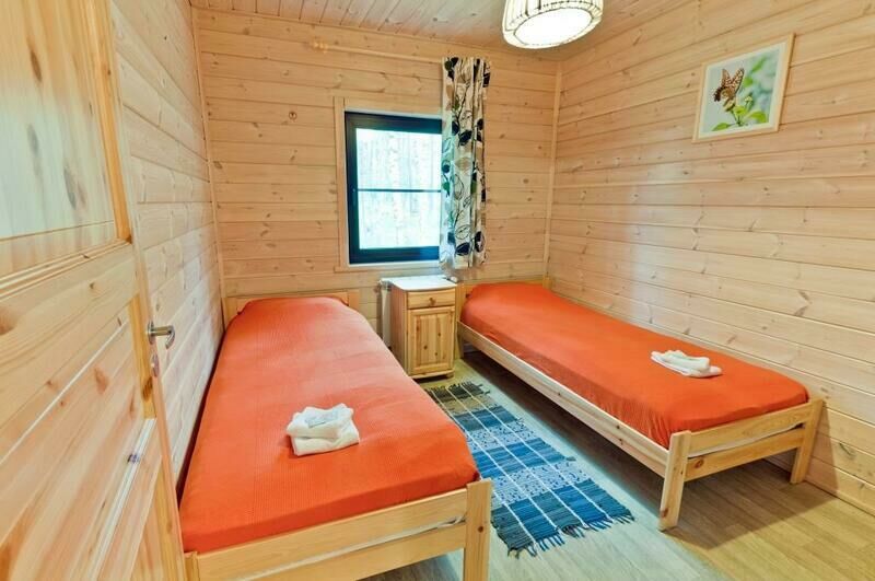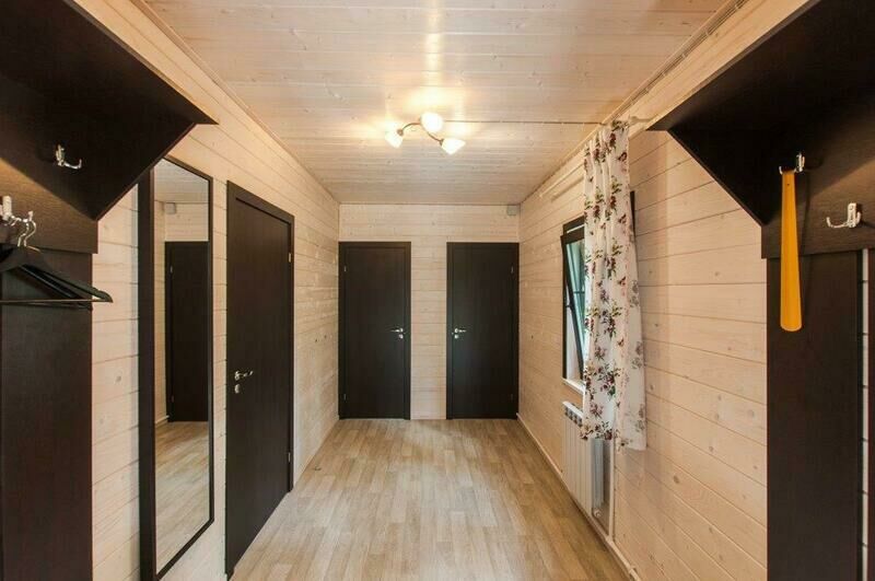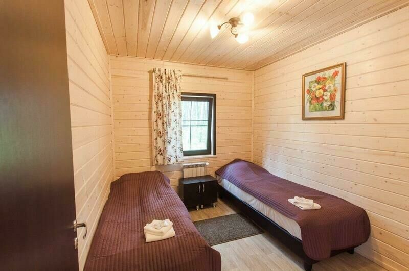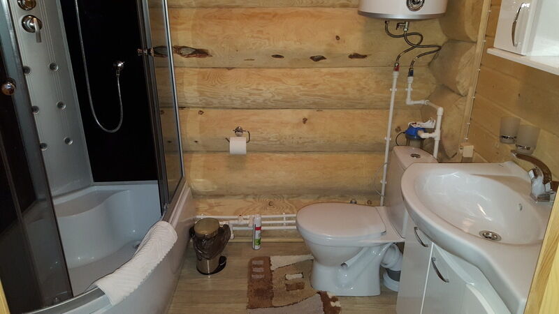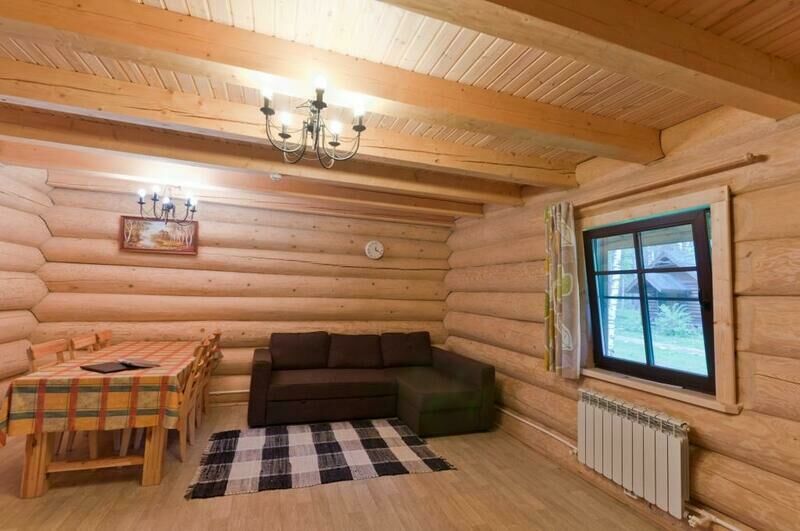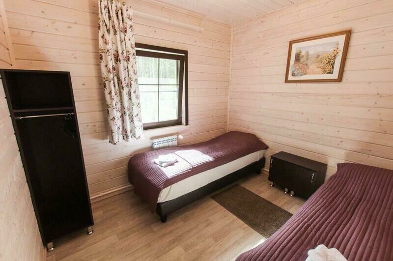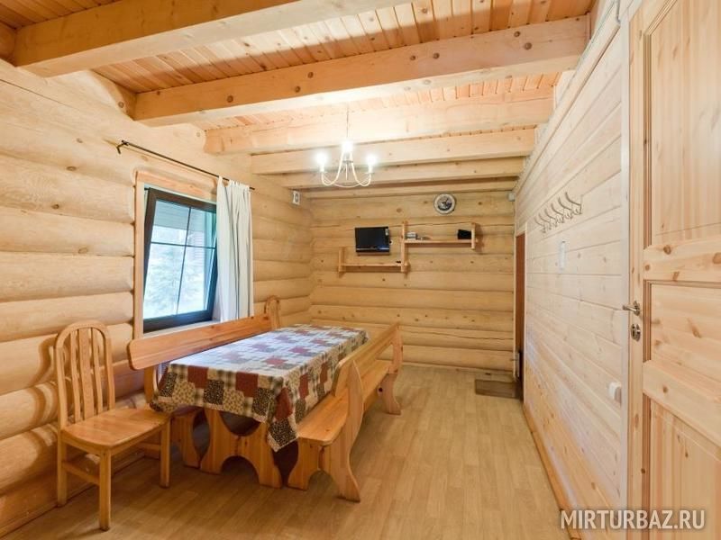 Большой одноэтажный коттедж с гостиной-столовой и 3-мя отдельными спальными комнатами. Из прихожей вы сразу попадаете в гостиную с кухонной частью, где имеется раковина с холодной и горячей водой, холодильник, микроволновка, мультиварка, электрочайник, наборы посуды и столовых приборов, рассчитанные на всех гостей. Здесь же стоит обеденный стол и двуспальный диван, на стене висит телевизор, подключенный к кабельному. Туалетная комната с холодной и горячей водой, оборудована душевой кабиной, унитазом, раковиной, над которой зеркало. Одна спальная с двуспальной кроватью. В двух других по две полутороспальных. Гостям предоставляются постельное белье, тапочки, полотенца, фен, туалетные принадлежности. Во всех помещениях функционирует центральное отопление и доступен бесплатный интернет Wi-Fi.