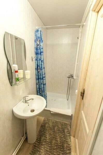 Уютный одноэтажный коттедж с большой гостиной-столовой и 4-отдельными спальными комнатами. В гостиной большая обеденная зона со столом, диваном на 2 места, телевизором, журнальным столом и кухней, в которой есть большой холодильник, мультиварка, электрическая плитка, микроволновая печь, чайник, посуда и столовые приборы на 10 персон. Две туалетные комнаты: одна полноценная с душевой кабиной, раковиной с зеркалом и унитазом, а вторая только с унитазом и раковиной с зеркалом. В кухню и туалетные комнаты подается холодная и горячая вода. В наличии постельное белье, тапочки, полотенца, фен, мыло, шампуни. Три спальные комнаты с односпальными кроватями, из которых легко собираются двуспальные и одна с двумя полутороспальными. Центральное отопление. Работает бесплатный интернет по Wi-Fi.Для гостей 7-го и 8-го коттеджей доступна уютная открытая беседка со столом и лавками.