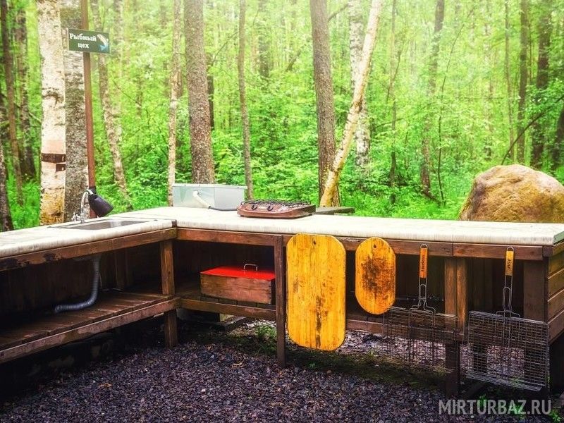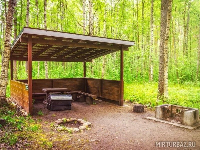 Рядом с домиком расположена зона для пикника. Здесь Вы можете пожарить шашлыки на мангале или сварить уху на костре, а отведать приготовленные блюда можно будет в зоне отдыха, где есть стол и скамейки.