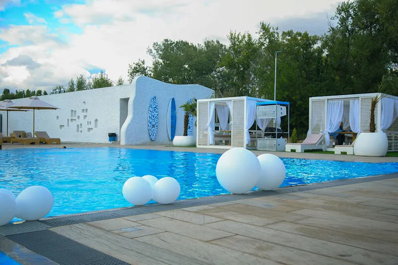 Тип бассейна: открытый бассейнВода в бассейне: подогреваемый бассейнРядом с бассейном: шезлонги, зонтикиВремя работы: от 9:00Глубина (диапазон): от 140 до 160 смПериод работы: летний сезонБассейн действует в летний период.
