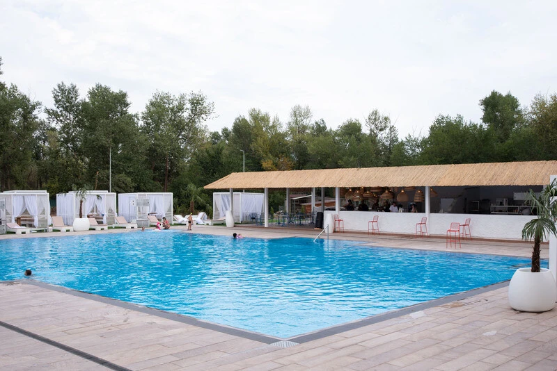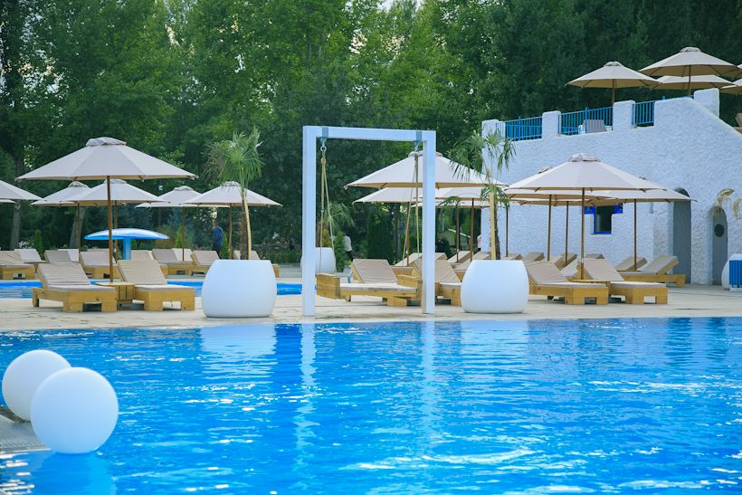 Тип бассейна: открытый бассейн, детский бассейнВода в бассейне: подогреваемый бассейнРядом с бассейном: шезлонги, зонтикиВремя работы: от 9:00 до 22:00Глубина (диапазон): от 60 до 70 смВ летний период функционирует детский бассейн, который находится рядом с бассейном для взрослых.