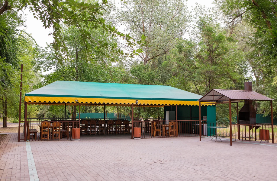 На территории работает ресторан. Постояльцы могут самостоятельно организовать барбекю, для чего на территории есть отдельные зоны с мангалом. Для организации торжества можно арендовать банкетный зал на 160 мест.