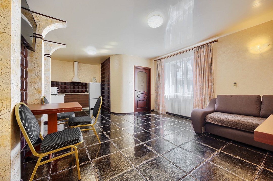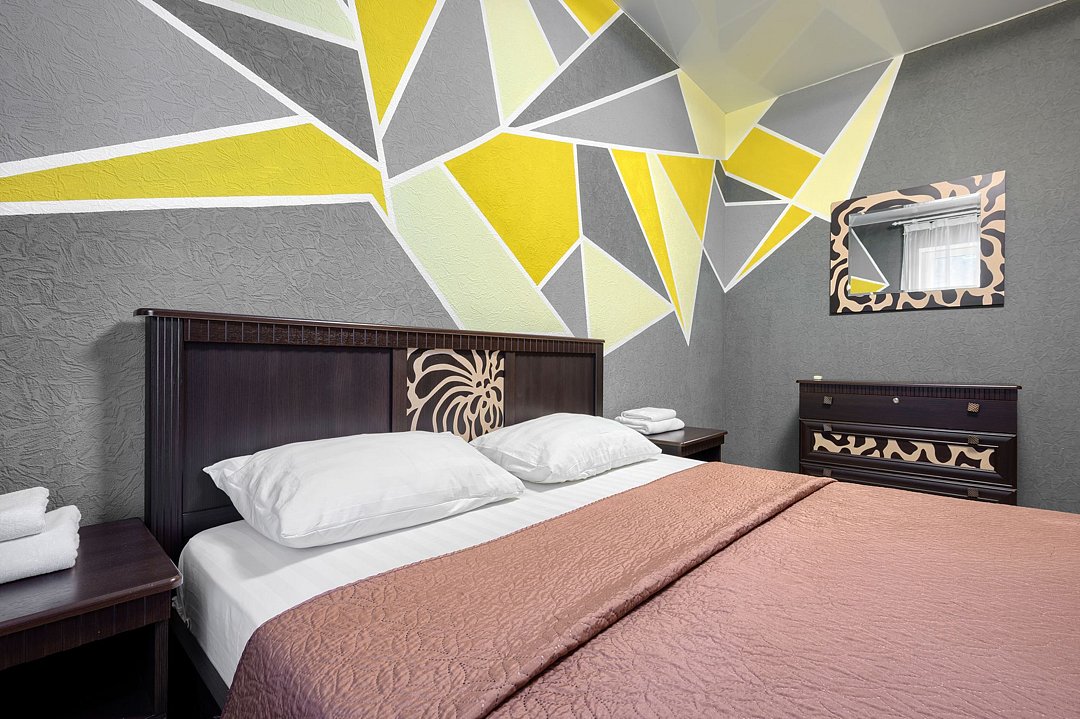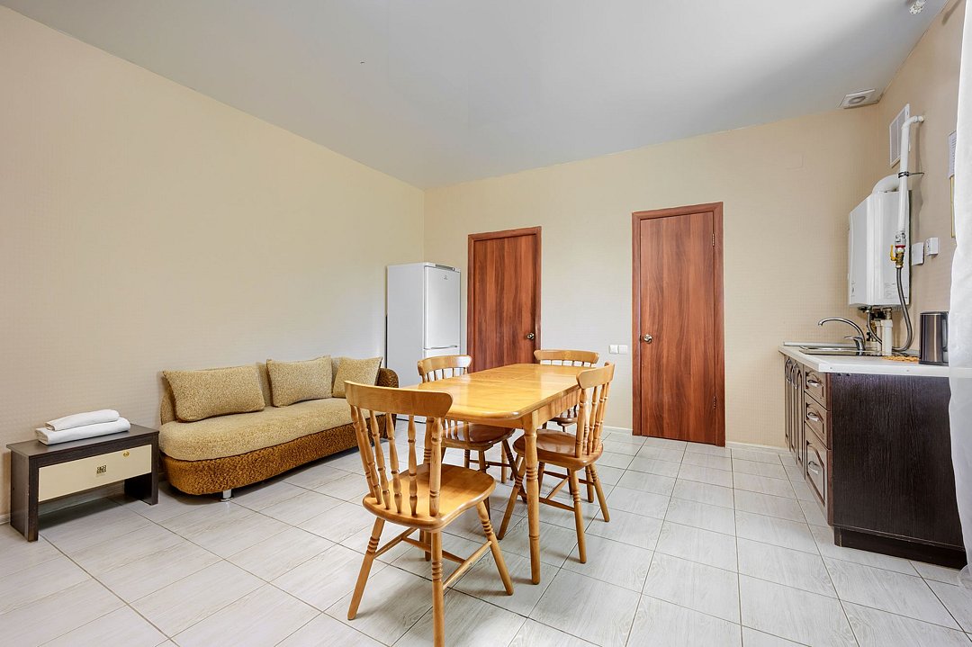 2-х местный номер. Прихожая, спальная комната + гостиная и кухонной зоной. Ванная комната с душем. Возможно 2 доп. места.