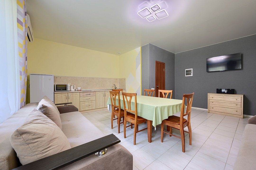 3-х комнатный номер, включающий большую прихожую, 3 спальни, большую гостиную с кухонной зоной и ванную комнату. Возможно 4 доп. места