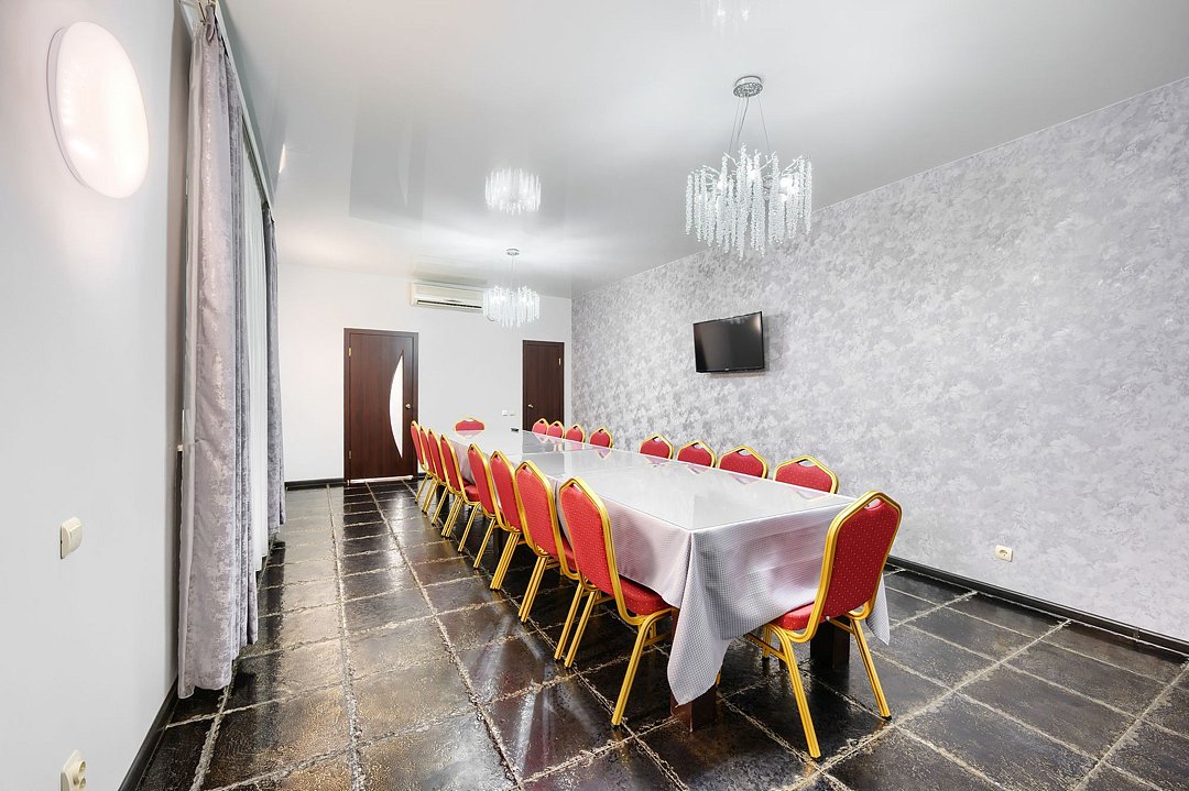 При заказе свадебного банкета — бесплатный номер для молодоженов и 10% скидка на размещение всех гостей мероприятия. Всего 150 посадочных мест.