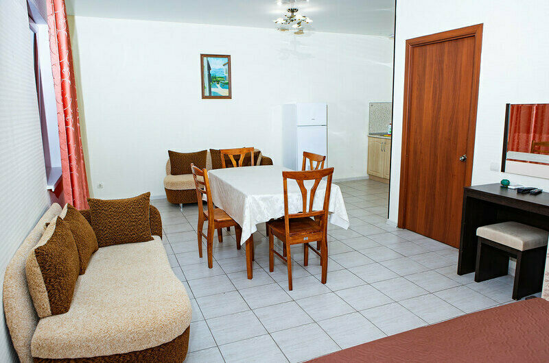 2-х местный номер. Прихожая, спальная комната + гостиная и кухонная зона. Ванная комната с душем. Возможно 2 доп. места.