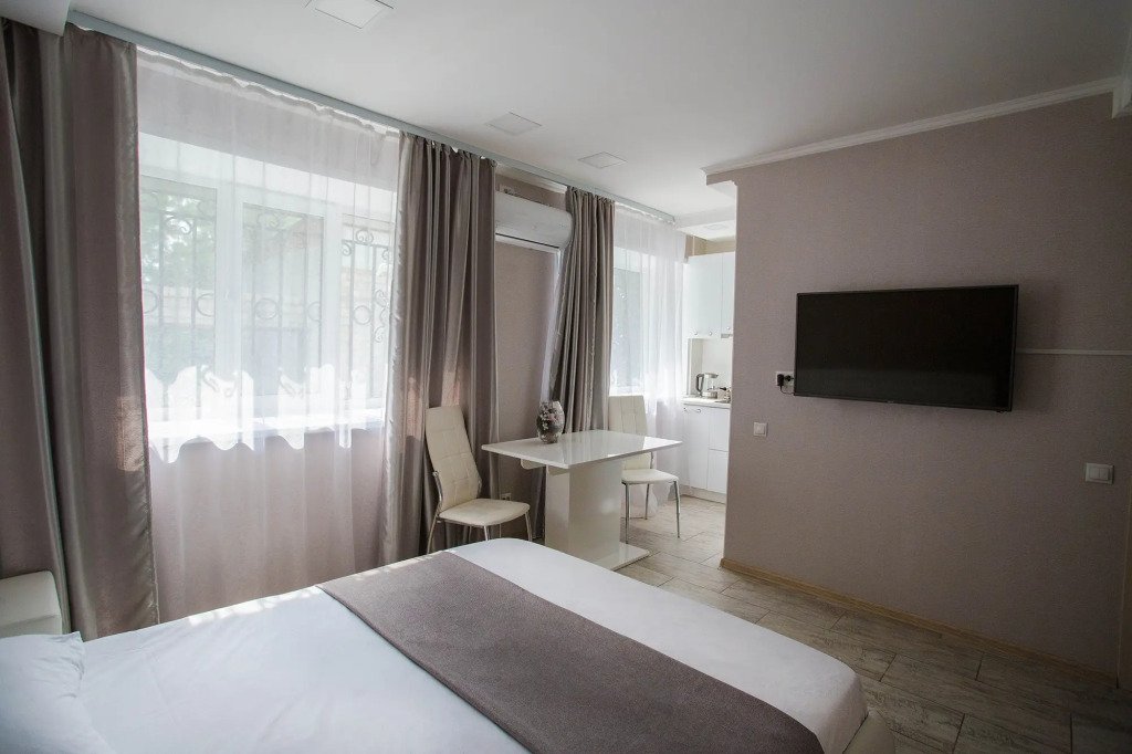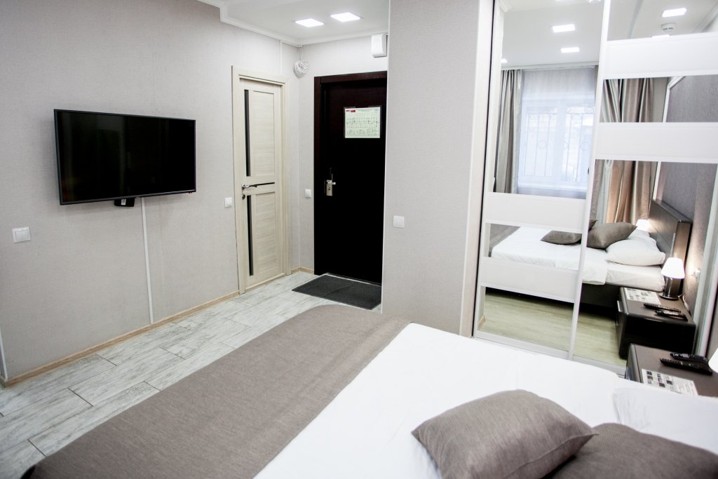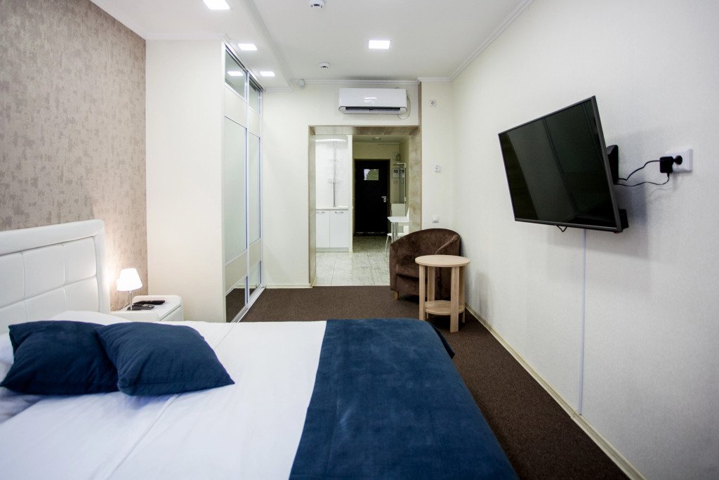 В номере гостей ждут телевизор и халат. Перечисленные услуги есть не во всех номерах.