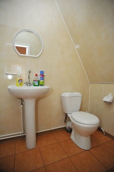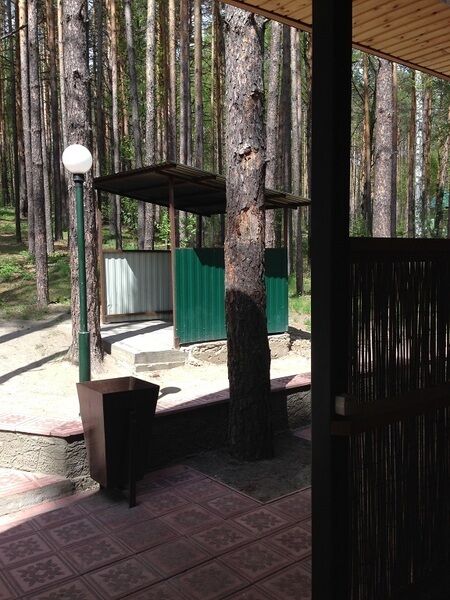 Вода и туалеты находятся на территории. В домике - кровати, тумбочки, набор посуды, рядом с домиком - лавки, столы. Мангалы предоставляются в прокат.