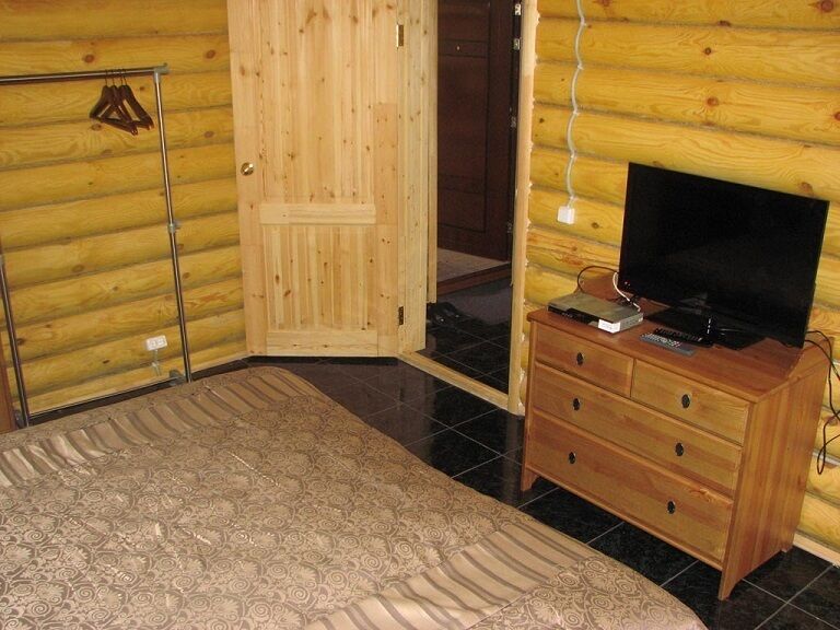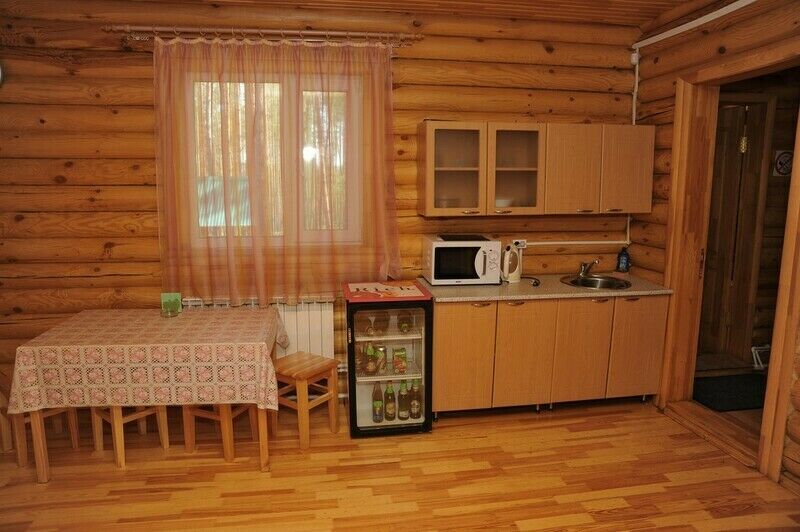 «Дом охотника» двухкомнатный, рассчитан на 2-4-х человек. Индивидуальная площадка для отдыха, мангал, небольшая кухня, место для багажа. Внутреннее убранство дома создает необычную атмосферу оторванности от повседневной жизни. Душ, туалет, холодильник, телевизор, СВЧ, электрочайник, кухонные принадлежности.