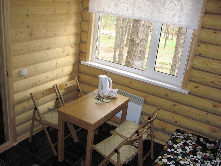 Эти домики расположены островками по всей территории базы отдыха. Работают с мая по сентябрь.
