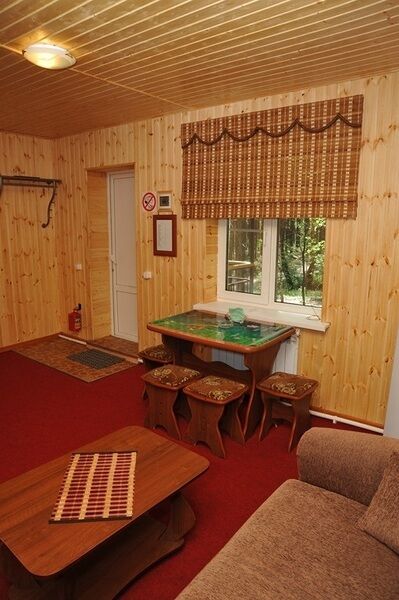На первом уровне располагаются 2-х. 4-х местные номера, позволяющие отдыхать большой семьей или компанией, на втором - 2-х местные. Каждый номер имеет отдельный вход. Для гостей "Теремка" прилегающая территория оборудована мангалами, удобными столами для приготовления блюд и лавками для отдыха. Окружающие "Теремок" сосны дают желанную прохладу летом и сказочную свежесть зимой. Этот корпус ближе других расположен к пляжу и летнему кафе. В каждом номере имеются душ, туалет, холодильник. телевизор, электрочайник. набор посуды.