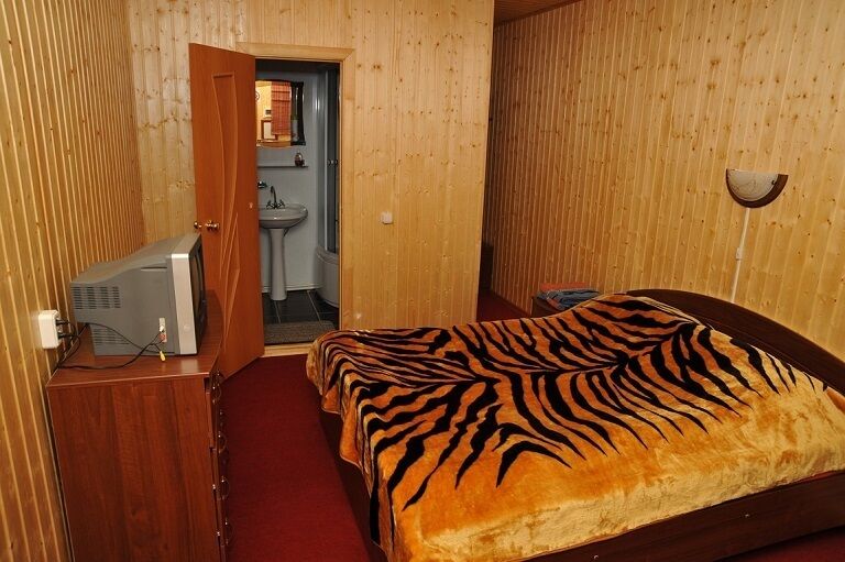 В каждом номере комфортная двуспальная кровать, место для багажа, душевая кабина, туалет, небольшой холодильник, телевизор, электрочайник, набор посуды.