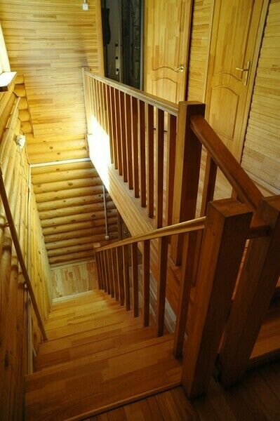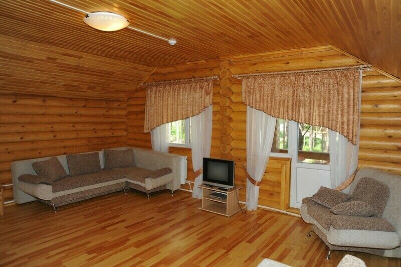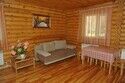 Коттеджи сложены из оцилиндрованного бревна, имеют по два этажа с открытыми верандами каждый. Расположены в наиболее спокойной и отдаленной от других корпусов части базы. Около каждого коттеджа – просторная беседка и мангал, на верандах – кресла для отдыха. На каждом этаже отдельный санузел с душевой кабиной. Кухонный уголок с мойкой, посудой и кухонными принадлежностями, холодильник, электрочайник, телевизор, мини-бар, телефон внутренней связи.