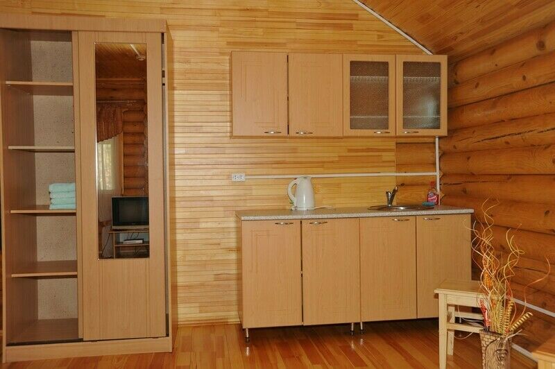 В любое время года готов принять гостей комплекс «Хуторок», состоящий из двух срубовых домиков, объединенных крытой площадкой для пикника и общим мангалом. Непогода не помешает отдыху на свежем воздухе. Каждый домик состоит из двух комнат и санузла с душевой кабиной. Два комфортных основных и дополнительное спальные места, телевизор, холодильник, посуда и комплект уличной мебели – для вашего отдыха.