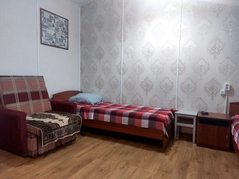 В номере 2 односпальные кровати и кресло-кровать, комод, комплекты постельного белья, телевизор (спутниковые каналы), интернет, душ, туалет, туалетные принадлежности.