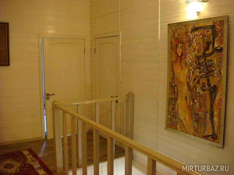 Пять комнат расположенные на втором этаже коттеджа, в каждой спальне двуспальная кровать, вешалки для одежды, жк телевизор, санузел с душем.