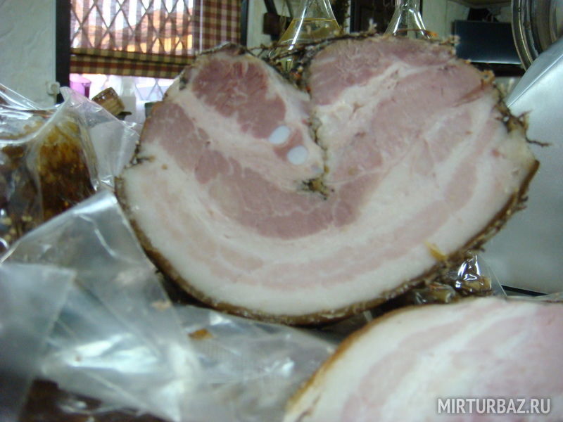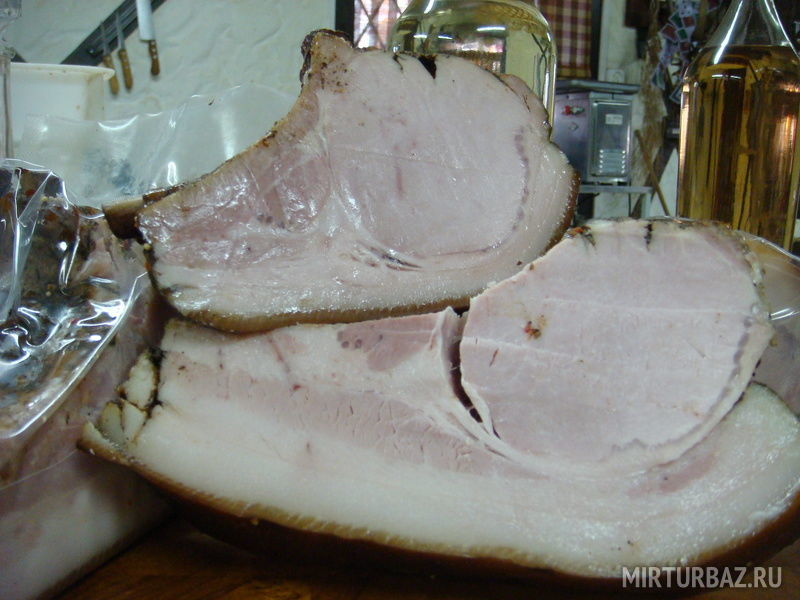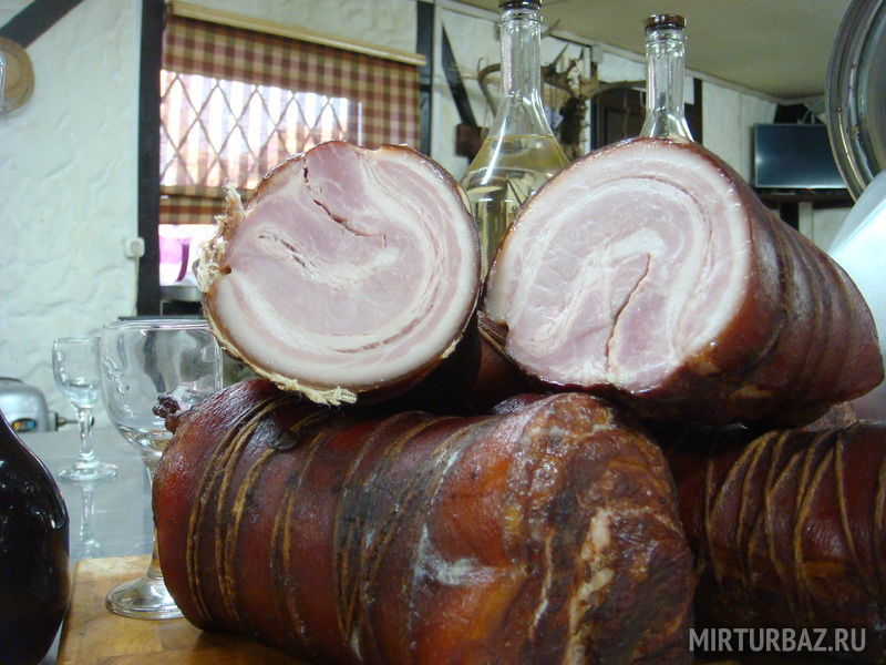 - пастрома (только шейка или филейка поросенка, сдобренная мёдом, чесноком, черным и душистым перцем);