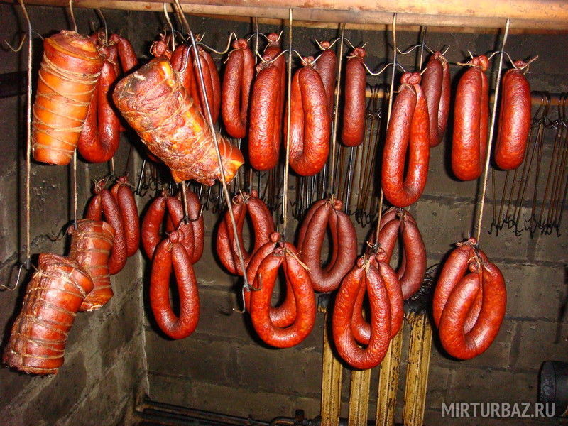 - колбаса селянская с большим количеством свежего чеснока, перцем и мускатным орехом;