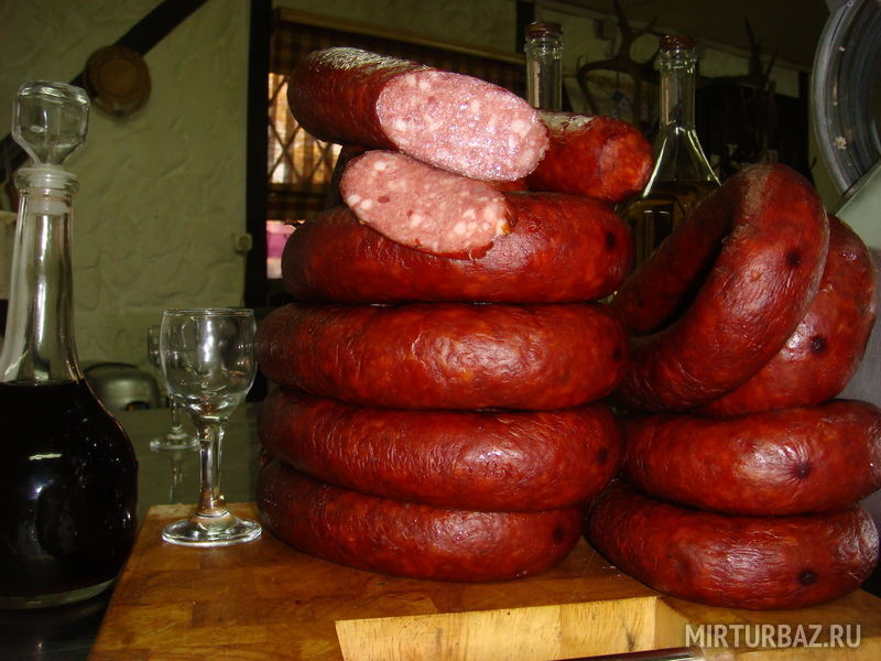 - колбаса домашняя (свинина, говядина, соль, чеснок, перец черный, кардамон);