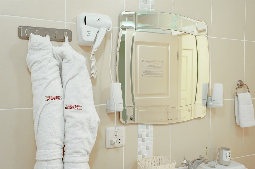 В классической мелодии дизайна номеров базы отдыха «Лесное Поместье» зазвучали авторские дизайнерские нотки. Номера категории «Делюкс» были созданы при участии дизайнеров и являются особой гордостью. Каждый номер обладает собственным характером и наполнен шармом, который придется по душе даже самым взыскательным гостям. Вы любите Францию, обожаете простоту, яркость и комфорт — тогда этот номер подойдет вам идеально. Его, словно выцветшие, на солнце цвета, с вкраплениями ярких акцентов создают уют и поднимают настроение. Обаяние старинных предметов, натуральные ткани, уютное очарование мягкой мебели, все это наполнит светом и умиротворением каждого нашего гостя. В номре две спални, гостинная и оборудованная кухня с обеденной зоной.Услуги и удобства