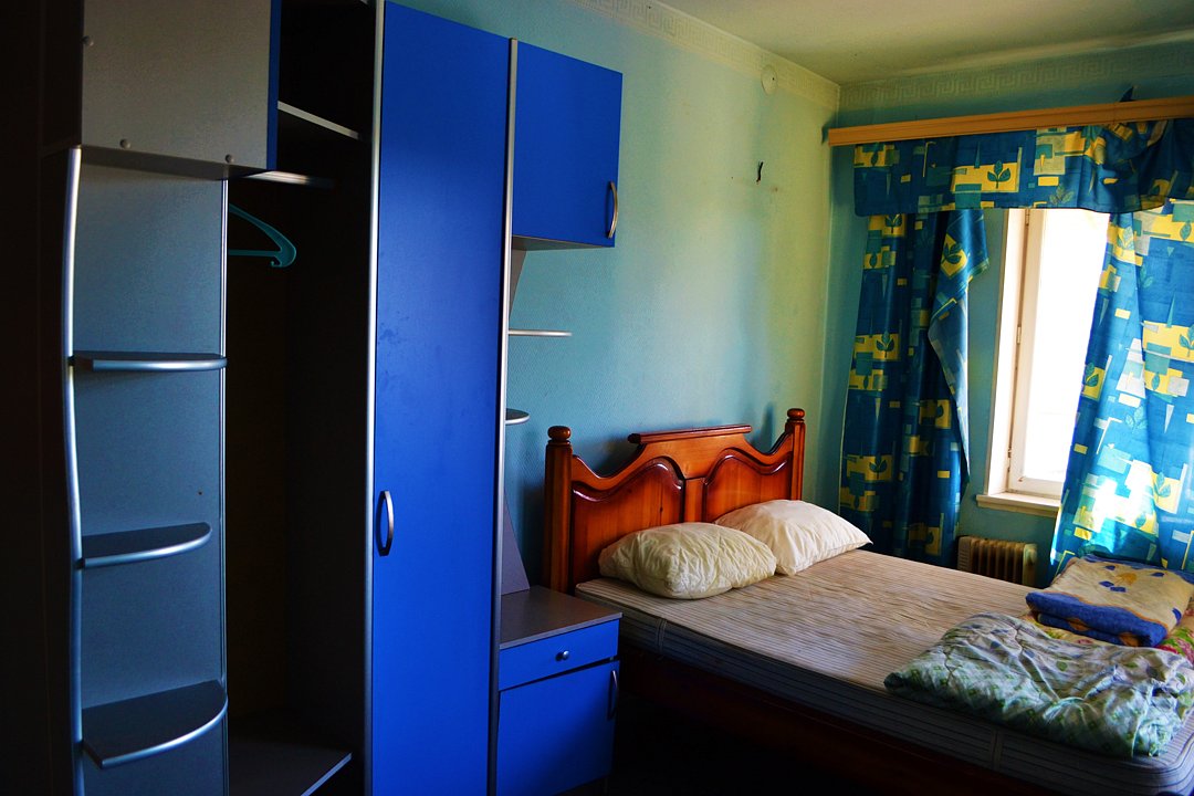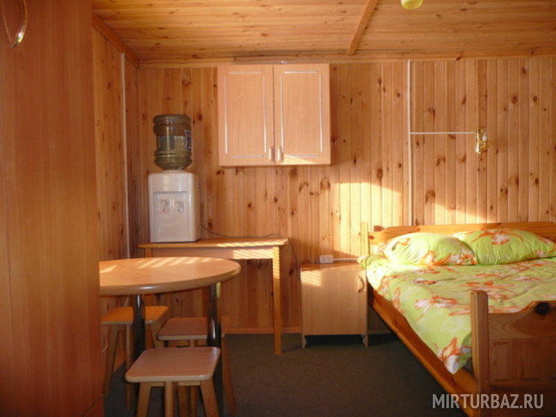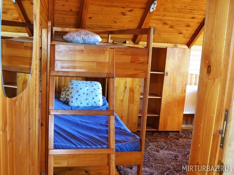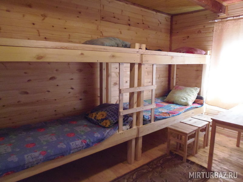 - Две комнаты — 2 места (двуспальная кровать) и 6 мест (двухъярусные кровати);