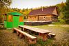 Гостиничный комплекс — это комфортабельные деревянные коттеджи и домики, предназначенные как для выезда за город большой компанией, так и для уединенного отдыха. В домах имеются все удобства, кухня, TV, камин. Рядом находятся бани, беседки, печки-барбекю, спортивная площадка.