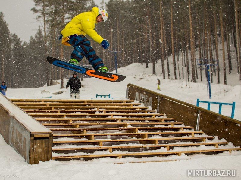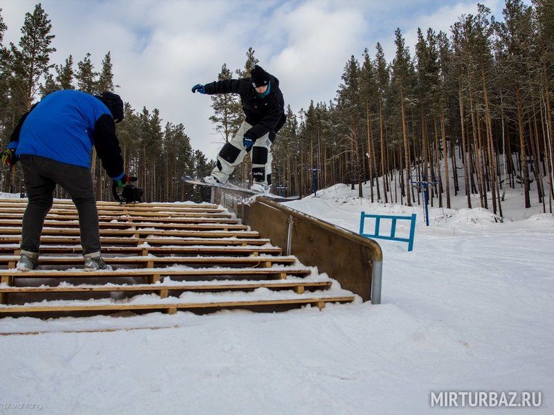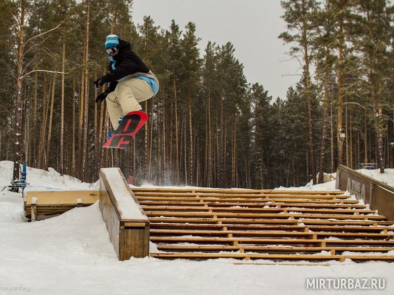 В зимний сезон на трассе устанавливаются элементы сноу-парка.