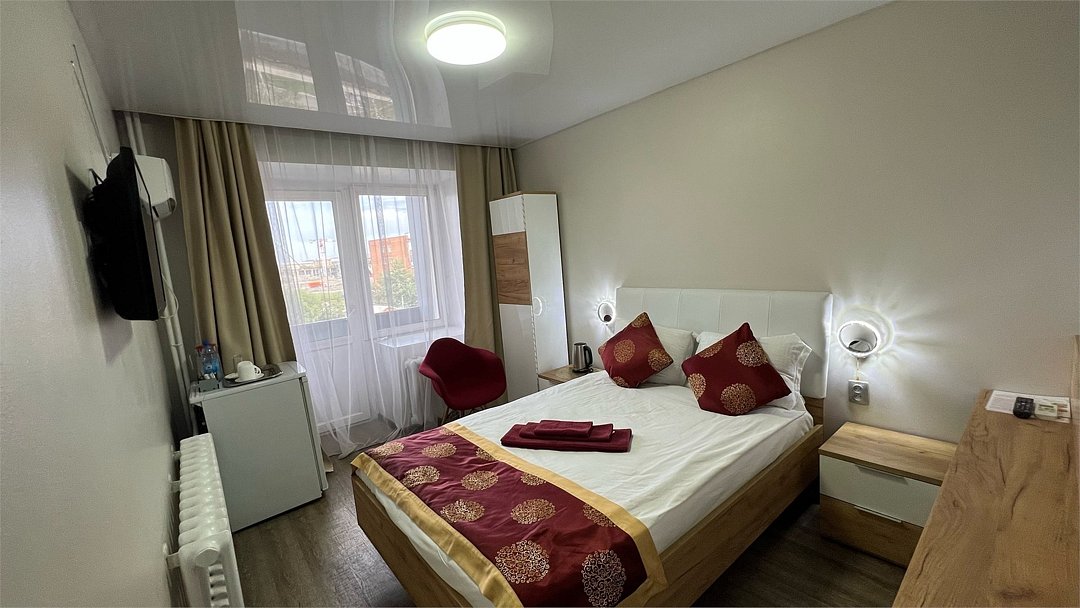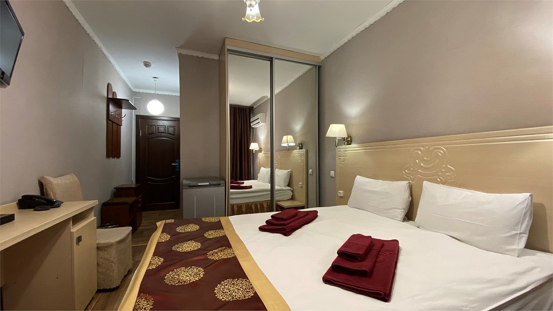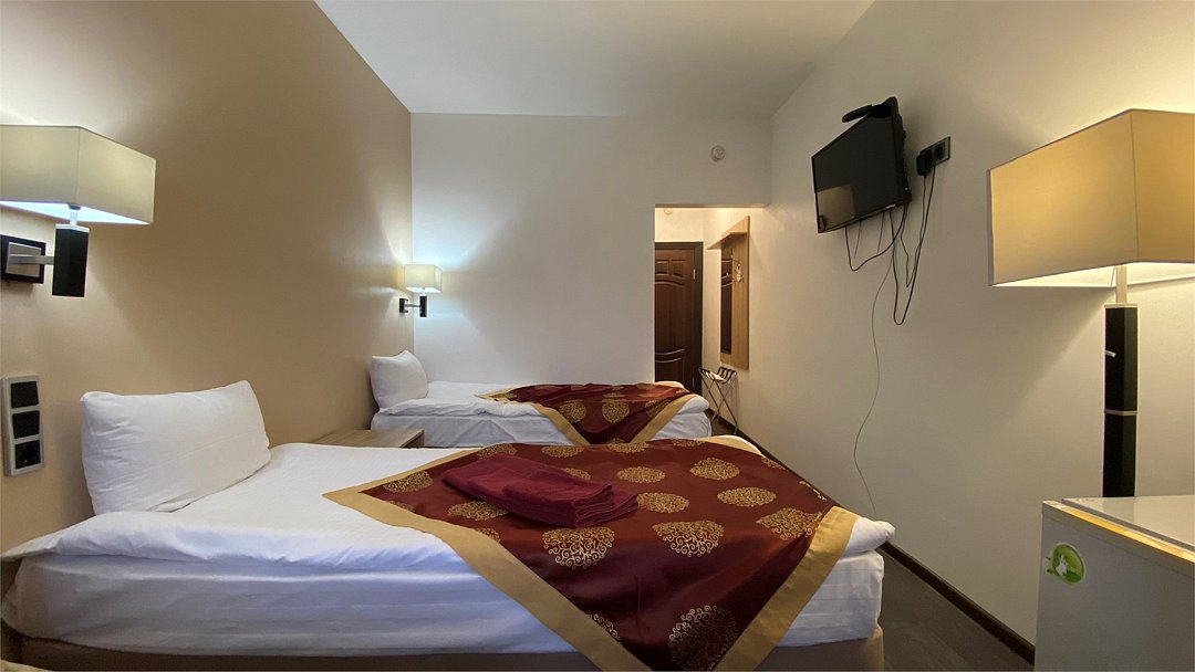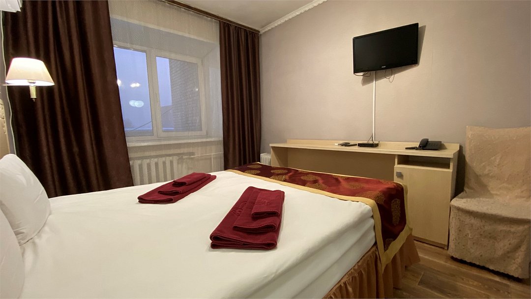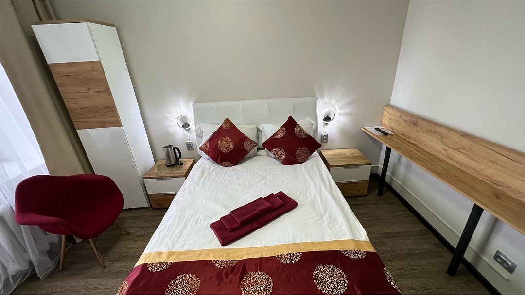 две кровати – 1 спальные, TV, холодильник, телефон, чайник, посуда, ванная комната, рабочая зона, WI-FI, без завтракаУслуги и удобства