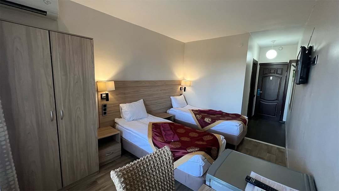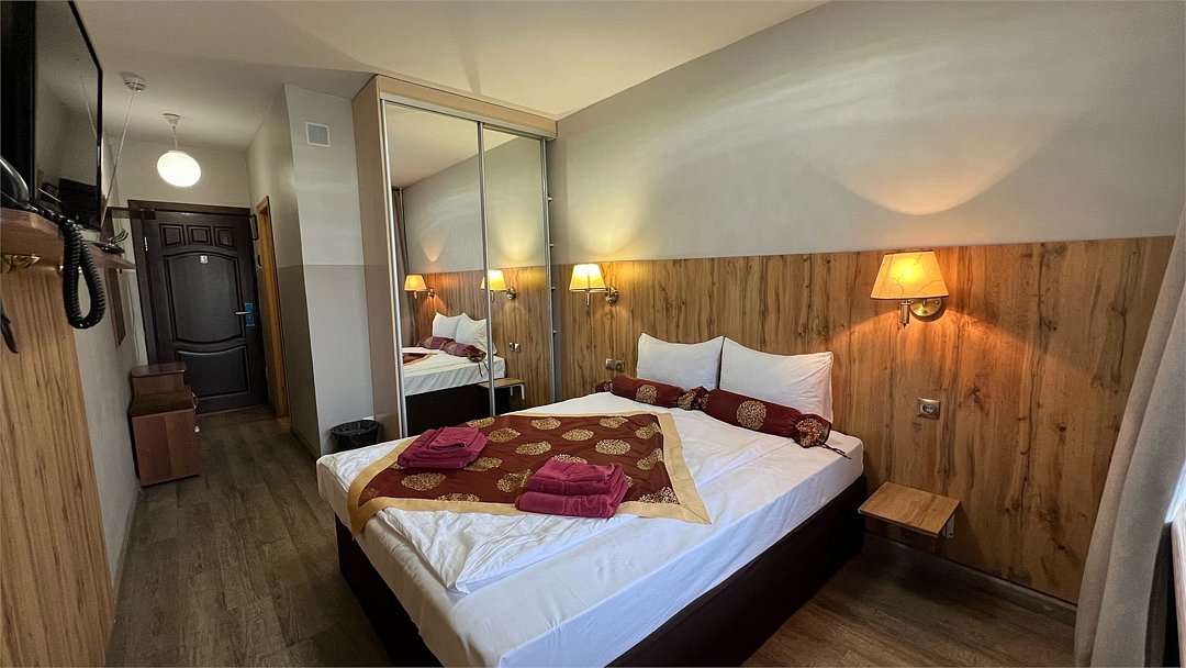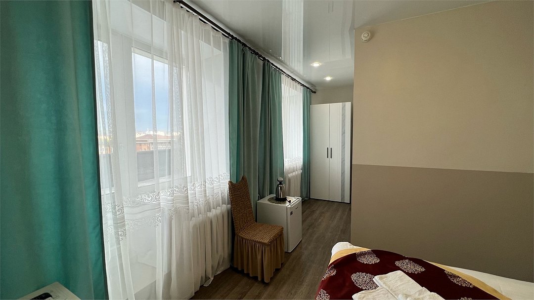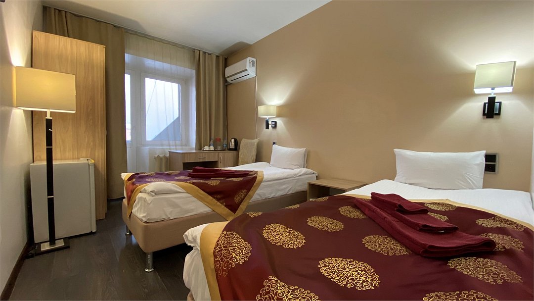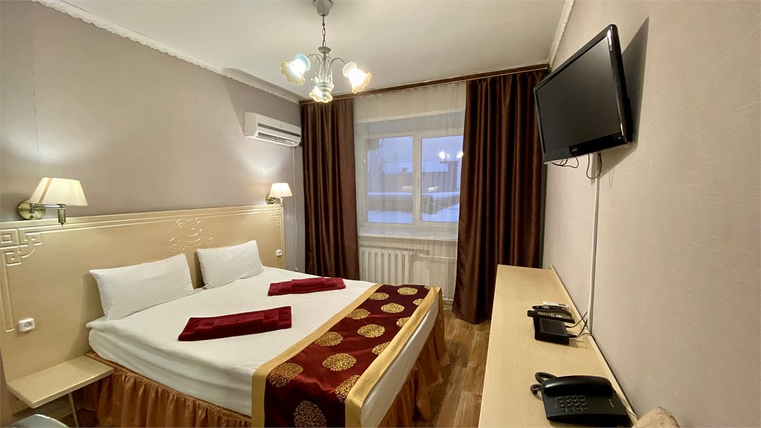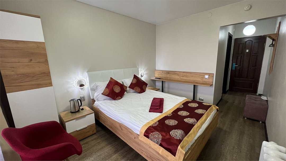 две кровати – 1 спальные, TV, холодильник, телефон, чайник, посуда, ванная комната, рабочая зона, WI-FI, без завтракаУслуги и удобства