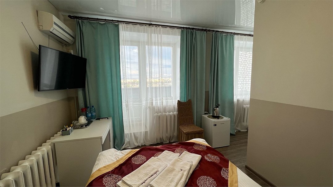 телевизор, кабельное телевидение, Wi-Fi, интернет, телефон, IP-телефон, холодильник, кондиционер, фен, система безопасности, ванная комната, ванна, банные полотенца, тапочки, балкон, балкон с красивым видом, полутораспальная кровать, шкаф для одежды, вешалки, письменный стол, багажная тумба, зеркало, чайный набор, обслуживание номеров, минеральная вода, чайник, унитаз, раковина, питьевая вода, отопление, душ, вид на город, кулер на этаже, стаканы, столовые приборы, стул, стол, туалетные средства, туалет, телевизор с плоским экраном, москитная сетка, вид на горы, номер для некурящих, фитнес-зонаВ номере