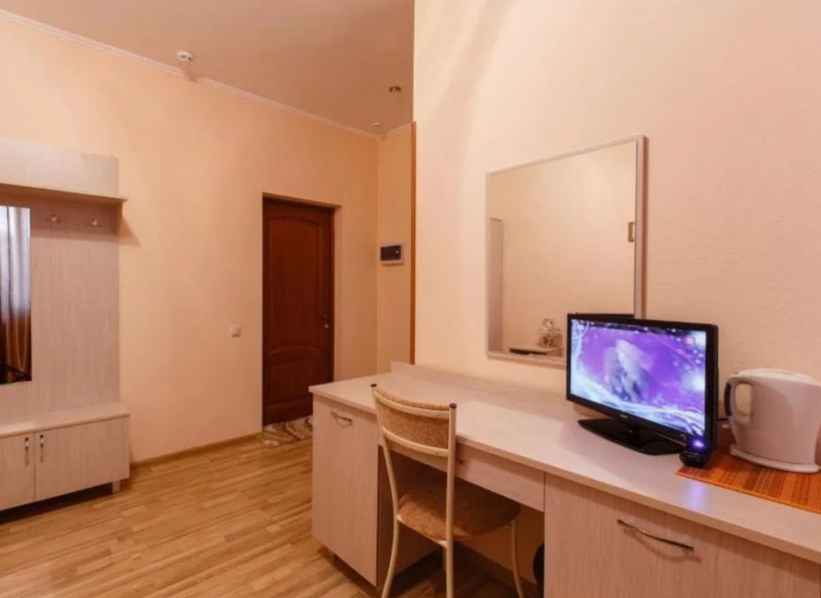 Номер уютно обставлен и оснащён необходимым, чтобы отдохнуть после долгого и насыщенного дня. Имеются телевизор и халат. Оснащение зависит от выбранной категории номера.
