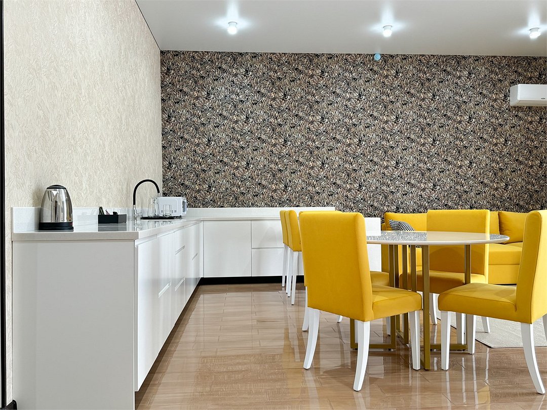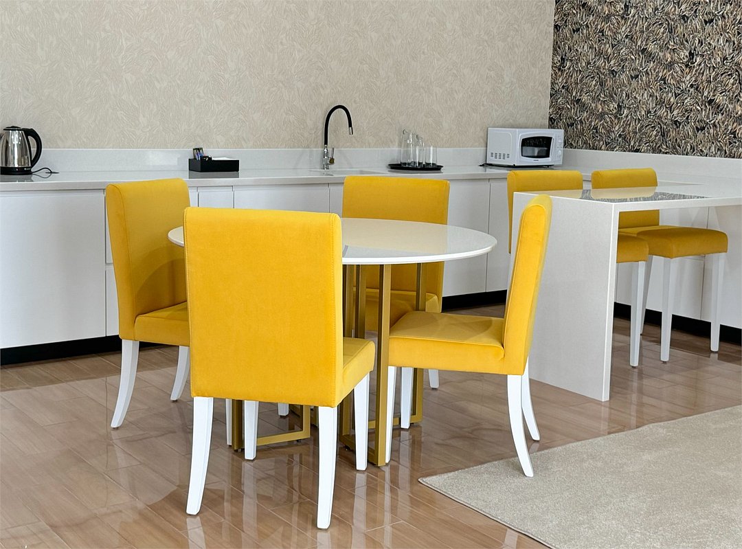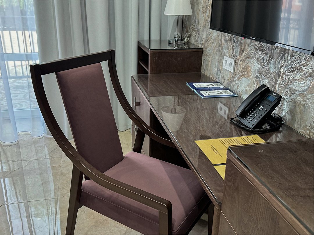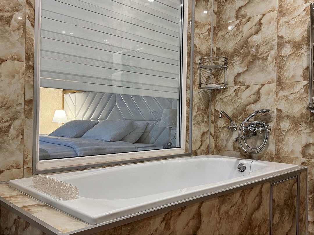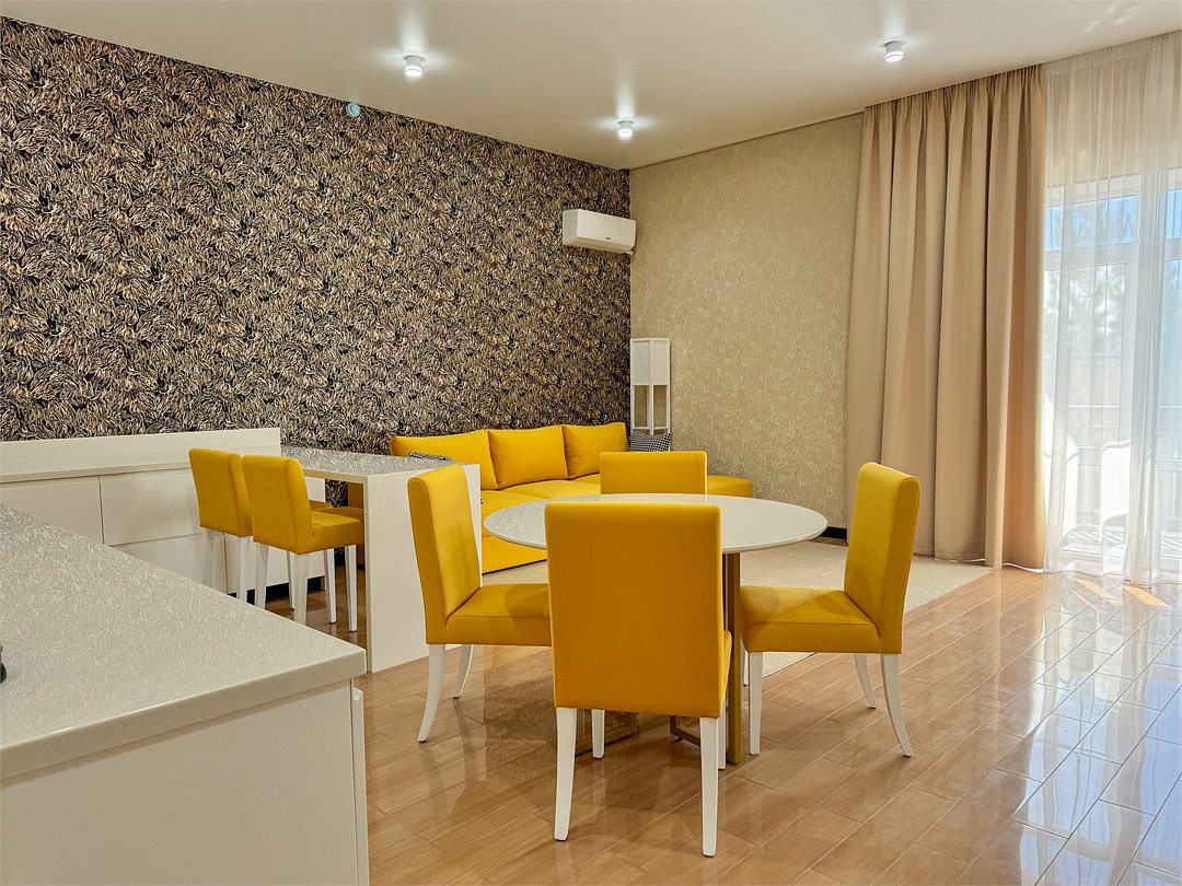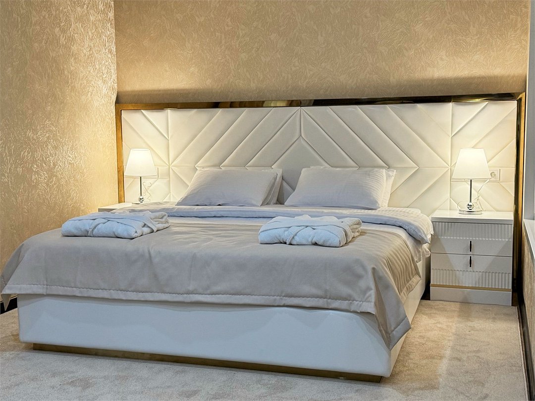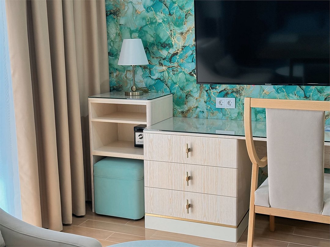 Просторный 2-комнатный номер 69 кв.м с двумя балконами, который идеально подходит для двух человек. Также можно разместить еще двух гостей на раскладном диване В комнате: Двуспальная кровать размером 160×200 см с ортопедическим матрасом для комфортного и здорового сна. Телевизор smart TV 50 дюймов Сплит-система Сейф для хранения ценных вещей Шкаф для одежды, оснащенный 10 плечиками, утюгом Открытая вешалка для верхней одежды, зеркало с подсветкой В гостиной: Раскладной диван с шагающим механизмом Телевизор smart TV 55 дюймов Сплит-система Микроволновка, чайник, мини-холодильник. В номер поставляется ежедневно бутилированная минеральная вода Обеденный стол на 4 персоны Рабочая зона с телефоном, удобным креслом В санузле: Ванна с подачей термально-минеральной воды (по назначению врача и под присмотром мед.персонала) Фен, халат, тапочки, набор одноразовой косметики Набор из 5 полотенец Сушилка для белья Лакониум (подогреваемая платформа) Унитаз и гигиенический душ Внимание! Фотографии номера являются примером категории данного типа. Реальный интерьер номера и его цветовая гамма могут отличатьсяУслуги и удобства