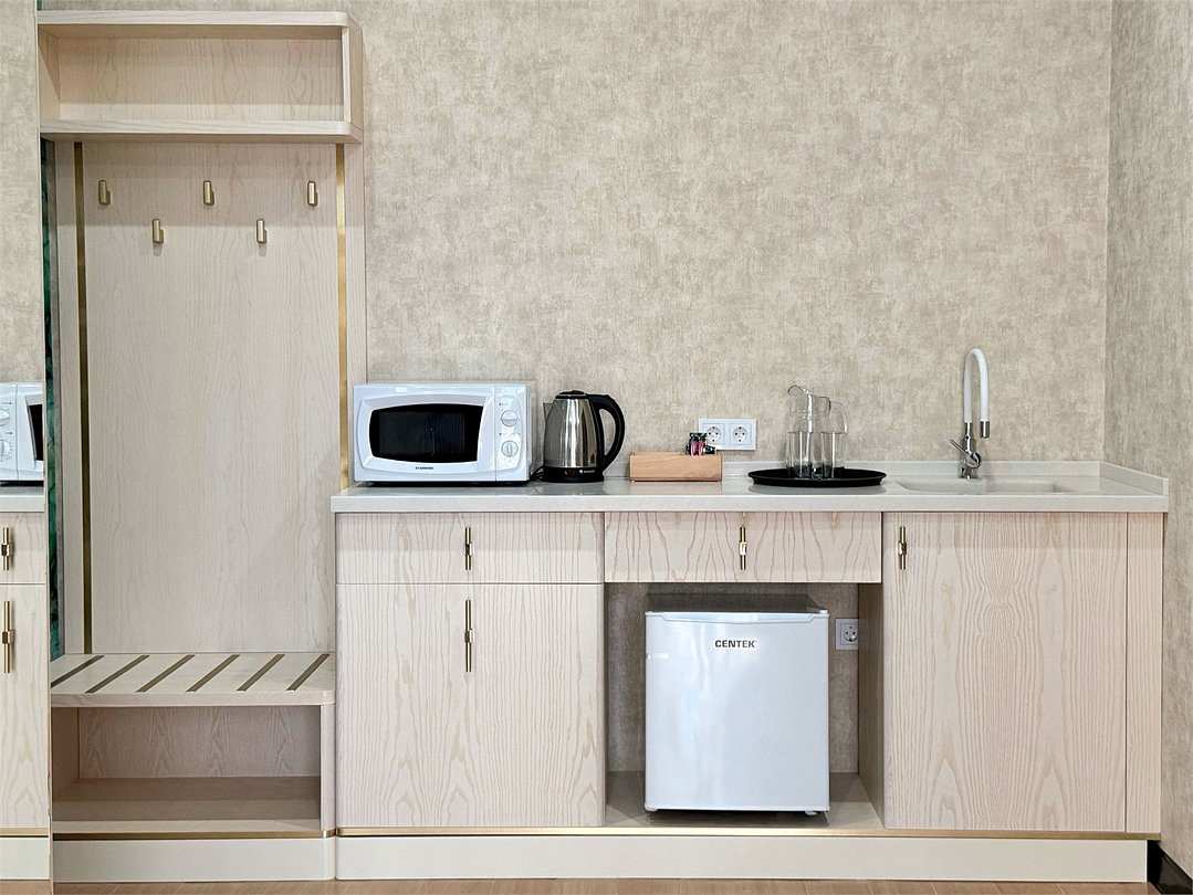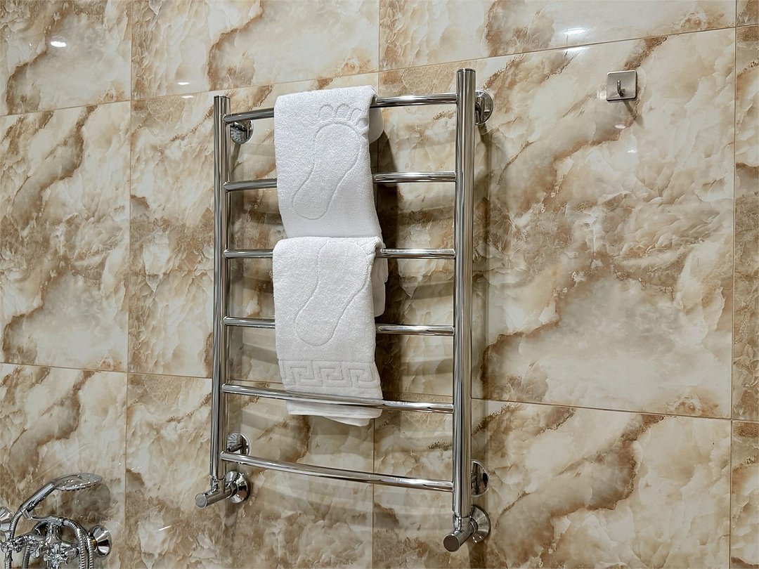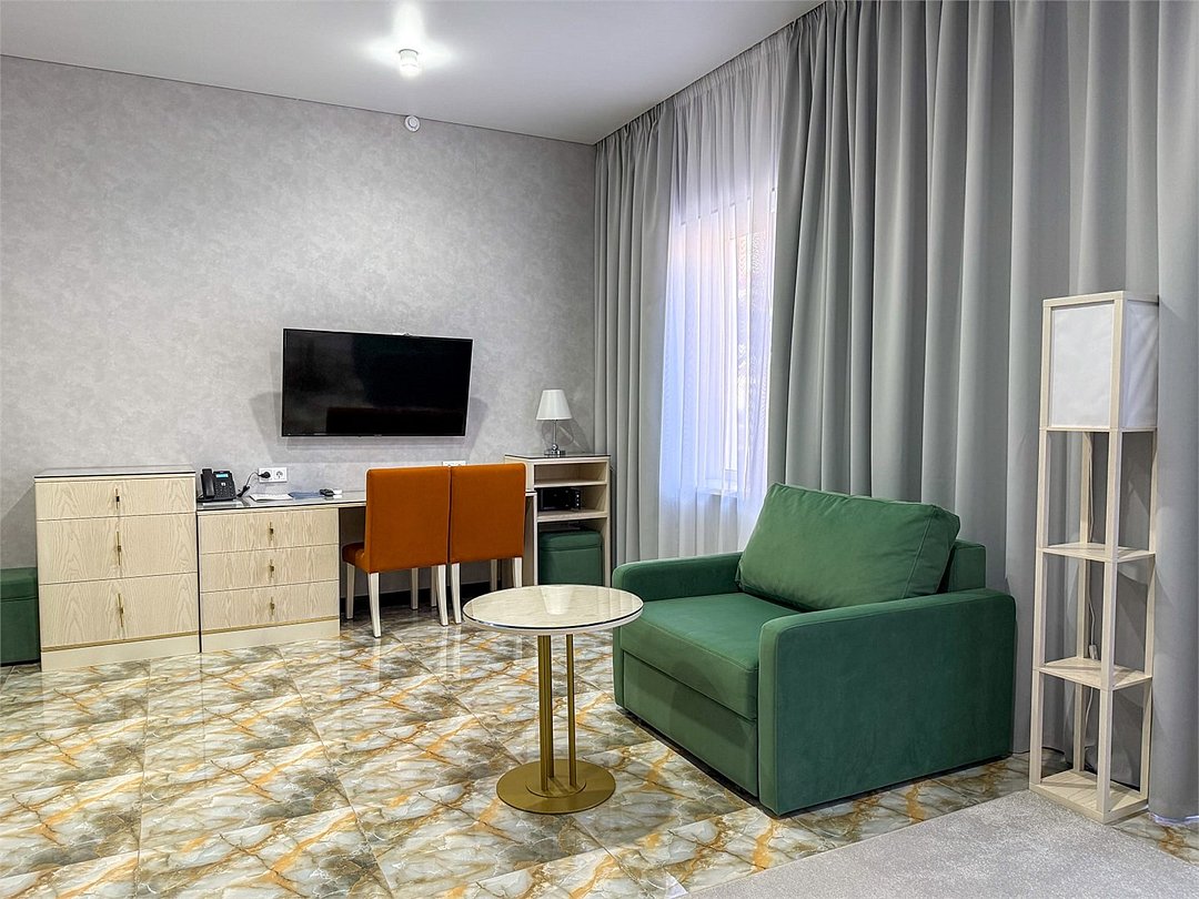 Просторный номер 35 кв.м с балконом, оформленный в современном стиле и с уютной планировкой, который идеально подходит для двух человек. Также можно разместить еще одного гостя на раскладном кресле В номере: Двуспальная кровать размером 180×200 см с ортопедическим матрасом для комфортного и здорового сна Раскладное кресло размером 90×200 см Телевизор smart TV 50 дюймов Сплит-система Сейф для хранения ценных вещей Шкаф для одежды, оснащенный 10 плечиками, утюгом Открытая вешалка для верхней одежды, зеркало Микроволновка, чайник, мини-холодильник. В номер поставляется ежедневно бутилированная минеральная вода Рабочая зона с телефоном, удобным креслом В санузле: Ванна с подачей термально-минеральной воды (по назначению врача и под присмотром мед.персонала) Фен, халат, тапочки, набор одноразовой косметики Набор из 5 полотенец Сушилка для белья Лакониум (подогреваемая платформа) Унитаз и гигиенический душ Внимание! Фотографии номера являются примером категории данного типа. Реальный интерьер номера и его цветовая гамма могут отличатьсяУслуги и удобства