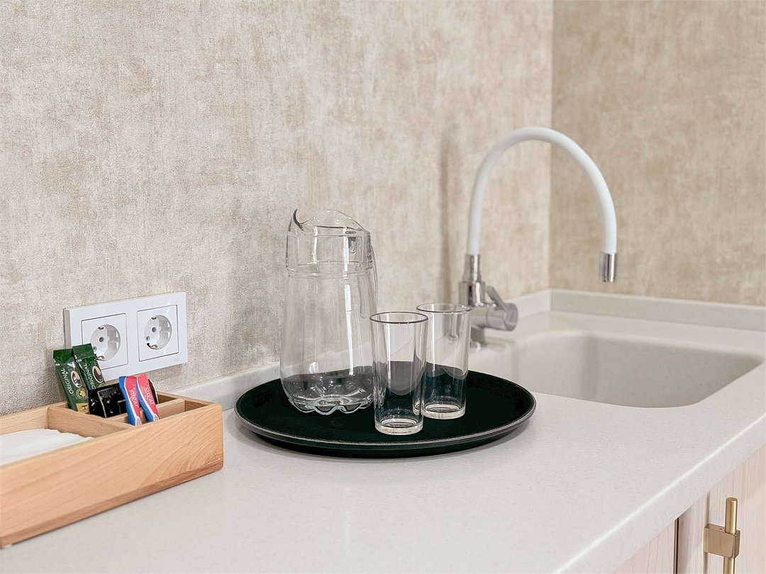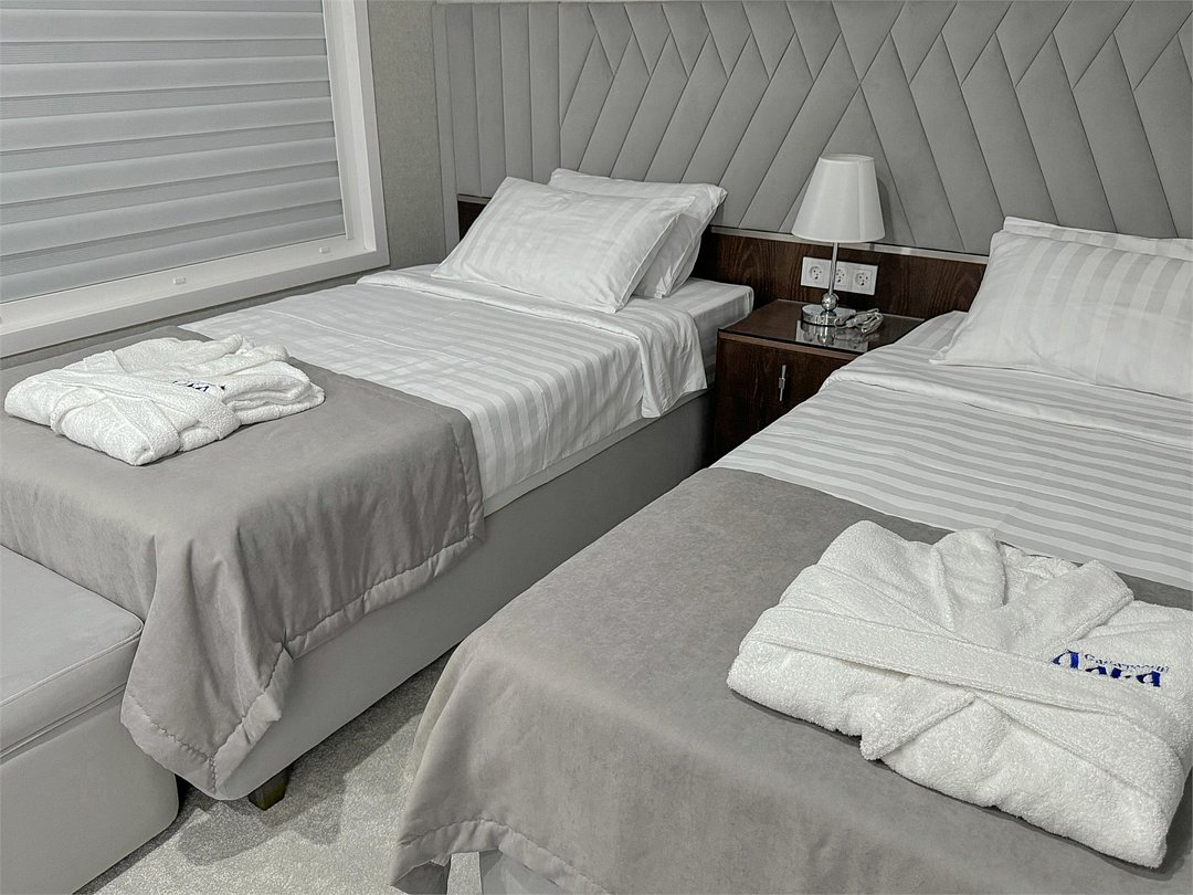Просторный номер 35 кв.м с балконом, оформленный в современном стиле и с уютной планировкой, который подходит для комфортного проживания как для одного человека, так и для пары В номере: Две односпальные кровати размером 90×200 см с ортопедическими матрасами для комфортного и здорового сна. Телевизор smart TV 50 дюймов Сплит-система Сейф для хранения ценных вещей Шкаф для одежды, оснащенный 10 плечиками, утюгом Открытая вешалка для верхней одежды, зеркало Микроволновка, чайник, мини-холодильник. В номер поставляется ежедневно бутилированная минеральная вода Рабочая зона с телефоном, удобным креслом В санузле: Ванна с подачей термально-минеральной воды (по назначению врача и под присмотром мед.персонала) Фен, халат, тапочки, набор одноразовой косметики Набор из 5 полотенец Сушилка для белья Лакониум (подогреваемая платформа) Унитаз и гигиенический душ Внимание! Фотографии номера являются примером категории данного типа. Реальный интерьер номера и его цветовая гамма могут отличатьсяУслуги и удобства