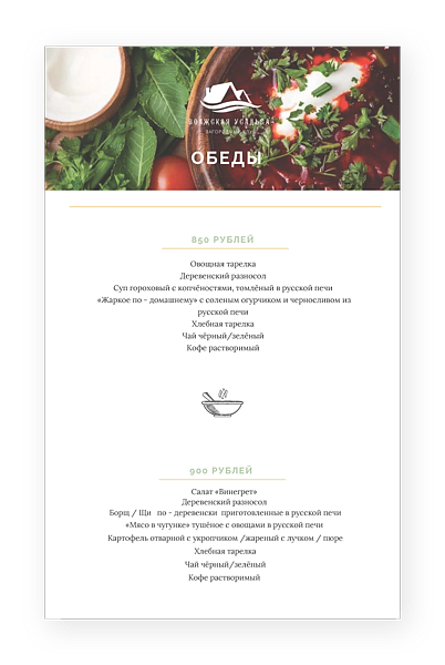 Вашему вниманию представлено меню, способное удовлетворить запросы самого взыскательного гурмана.