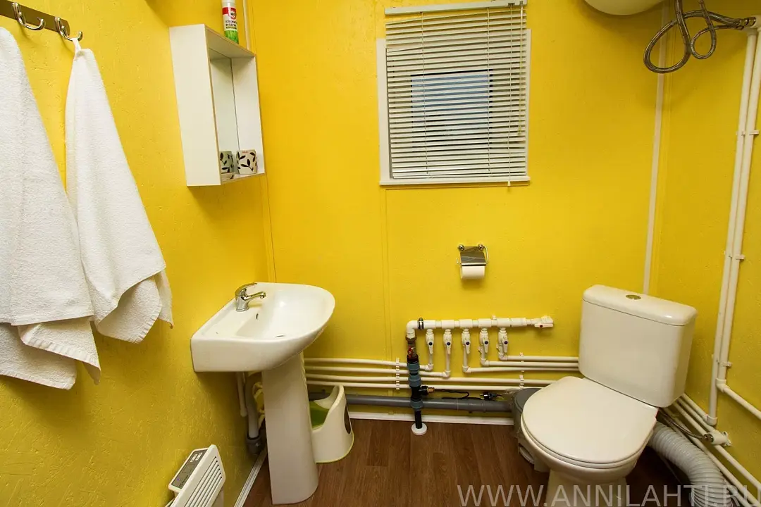 - В ванной комнате расположена душевая кабина, раковина и компакт
