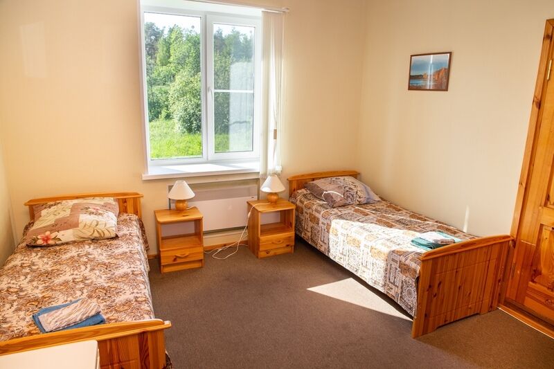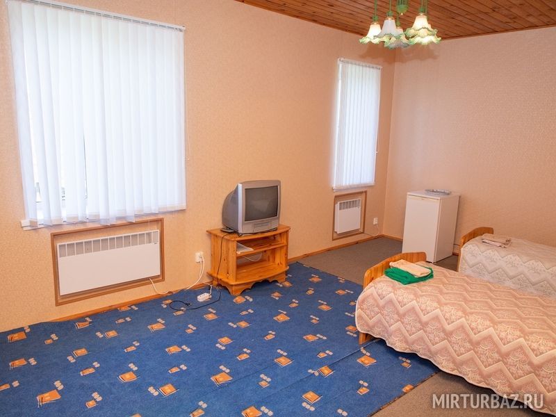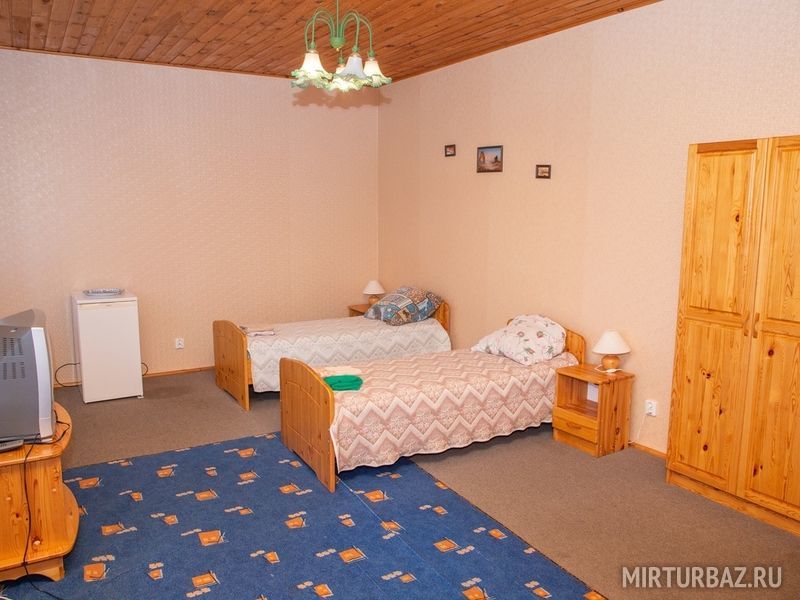 Для размещения гостям предлагаются 2-х и 3-х местные номера в гостинице или отдельный коттедж со всеми необходимыми условиями для комфортабельного проживания.