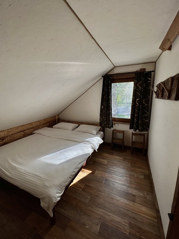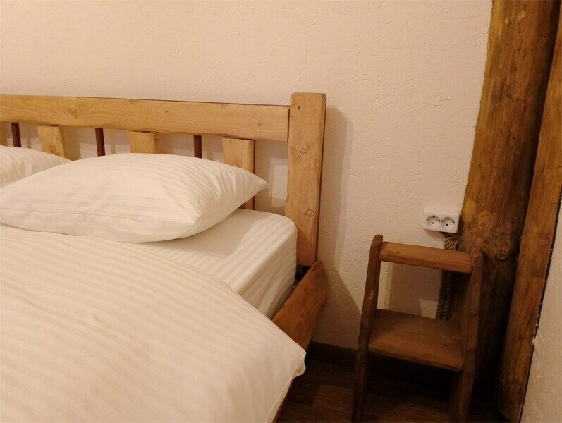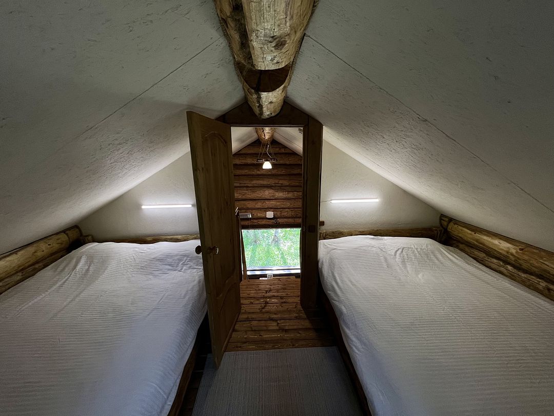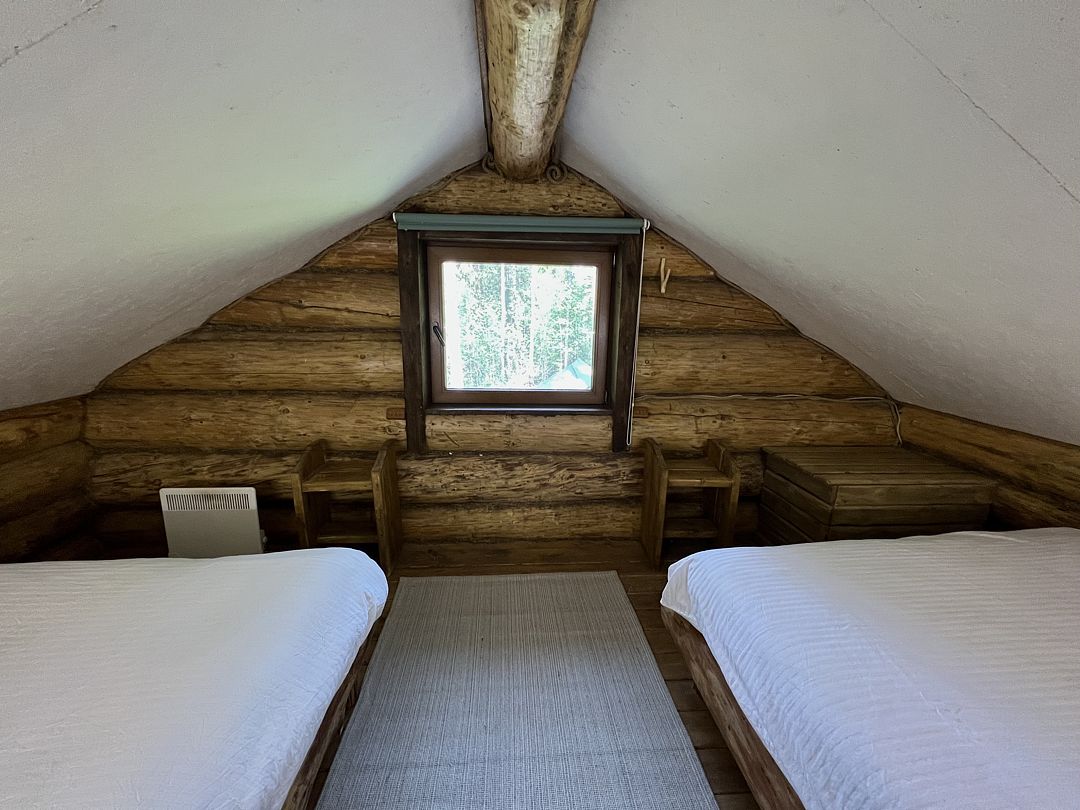 На втором этаже или, как его еще называют «Финской антресоли», расположены 2 двуспальные кровати с прикроватными тумбочками и ночным светом.