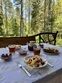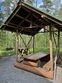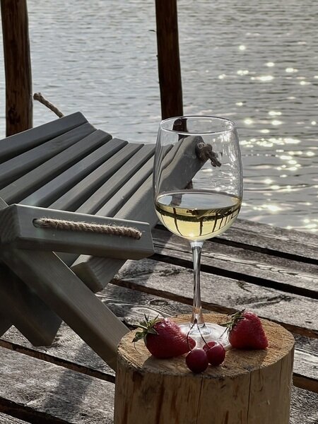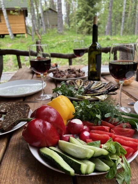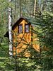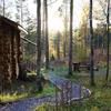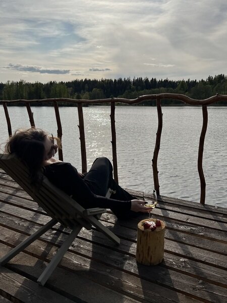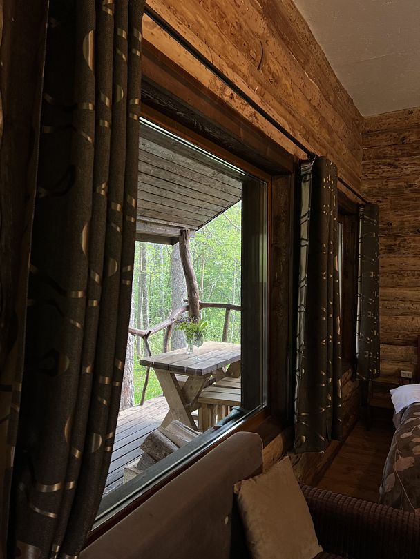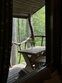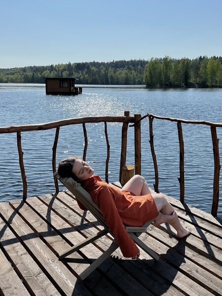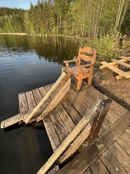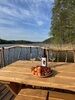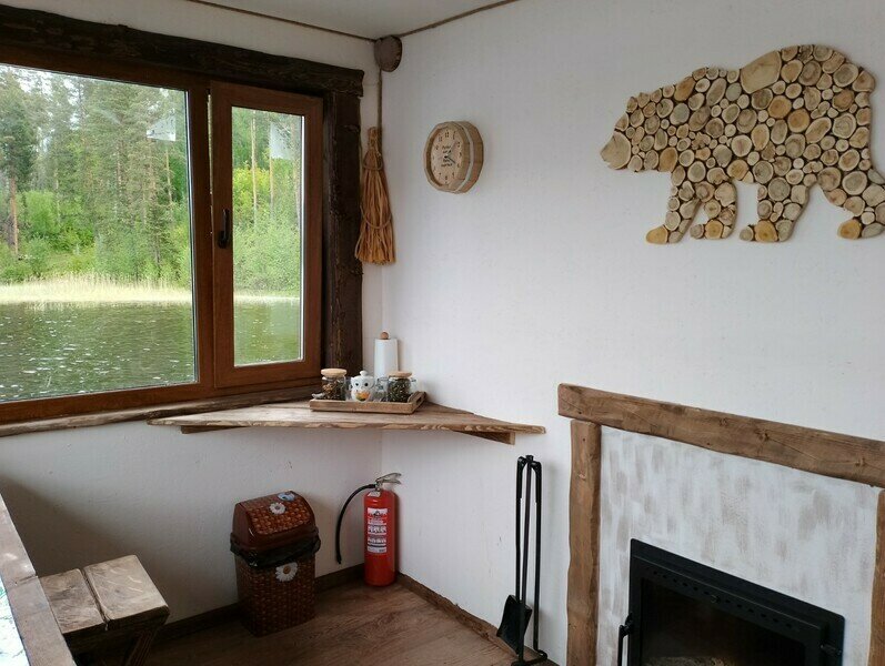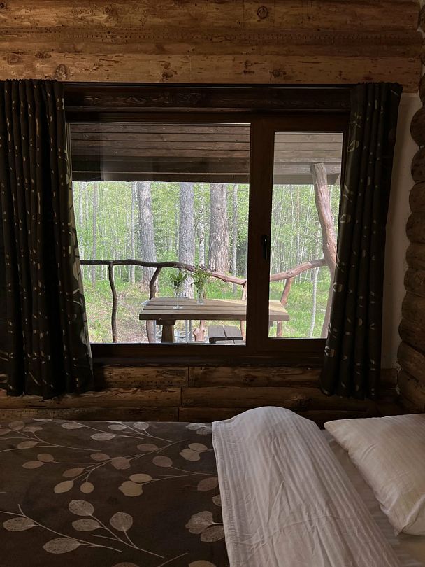 Купель находится в отдалении от коттеджей с видом на лес и озеро, что помогает созерцать природу в полном расслаблении, нежась в тёплой воде.