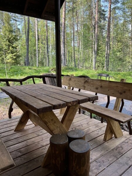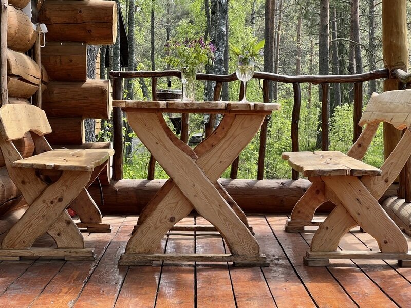 Так же для Вас большая открытая панорамная веранда со столом и скамейками ручной работы.