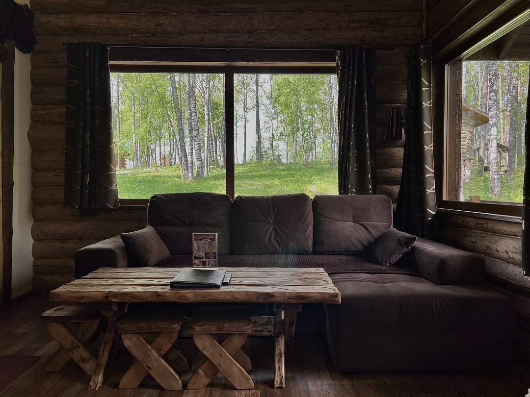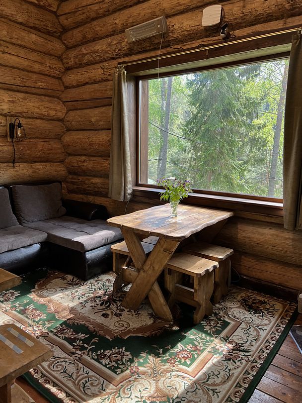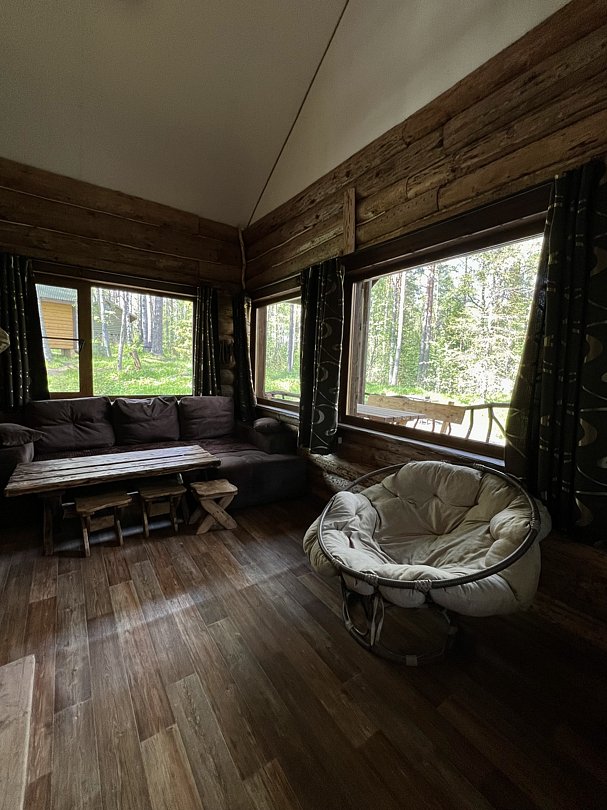 Инфраструктура: зона отдыха, полотенца, шапочки, березовые веникиРасположение: выход к озеруБаня с панорамными окнами на берегу озера. Рассчитана на компанию до 8 человек.