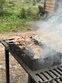 У каждого коттеджа перед террасой кованый мангал с шампурами.