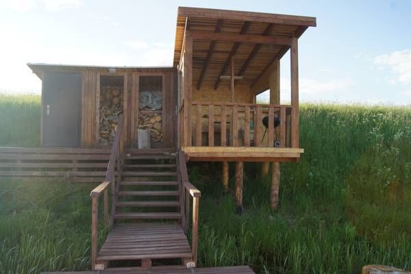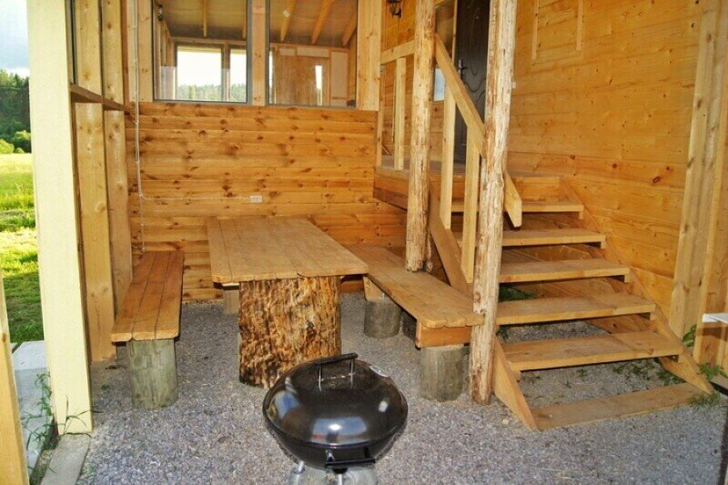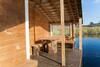 Дом для отпуска располагает гостиным уголком с телевизором и мини-кухней с холодильником, варочной панелью и электрическим чайником, двухъярусная кровать, диван, односпальные кровати. Стол может быть накрыт на меблированной террасе. Из окон можно любоваться видом на реку.