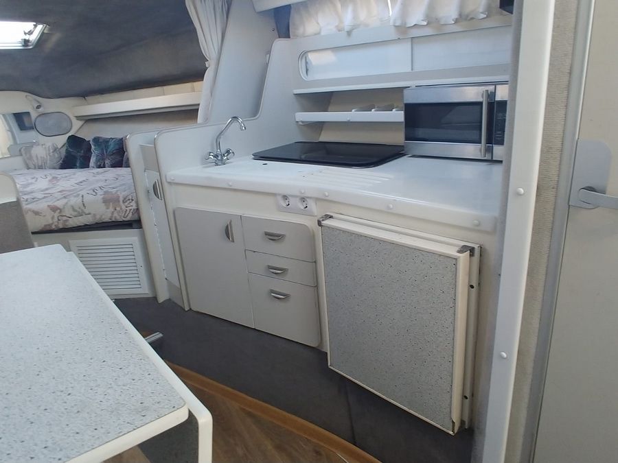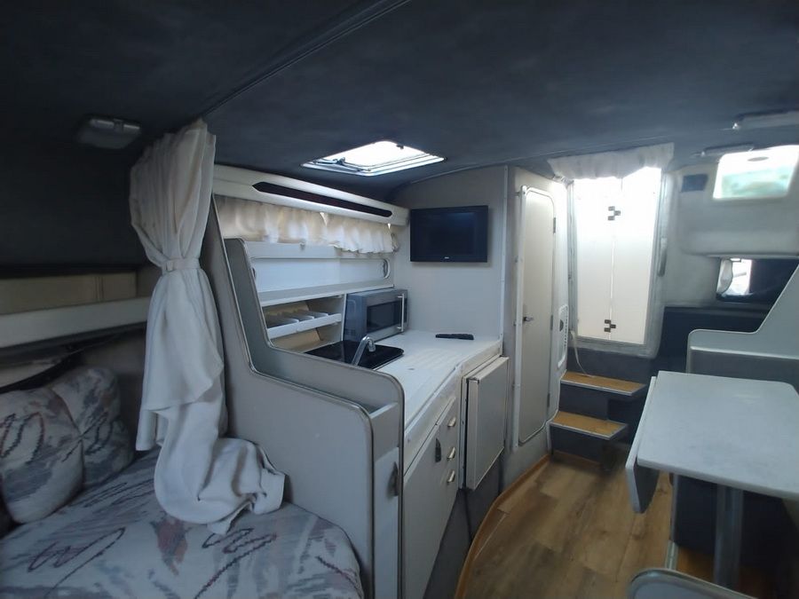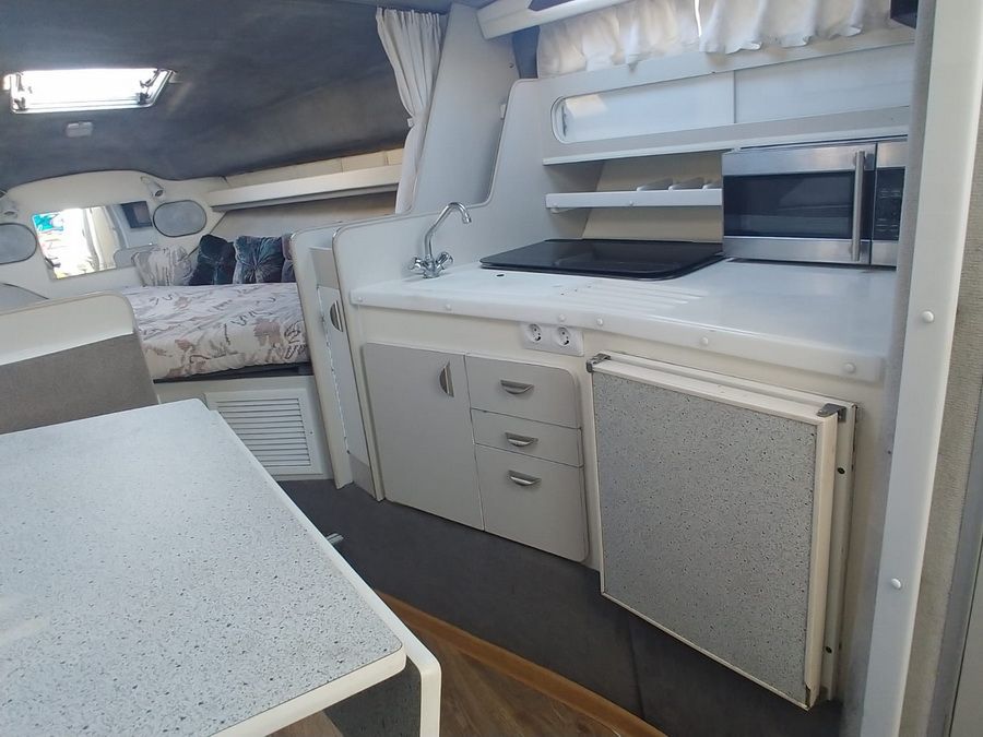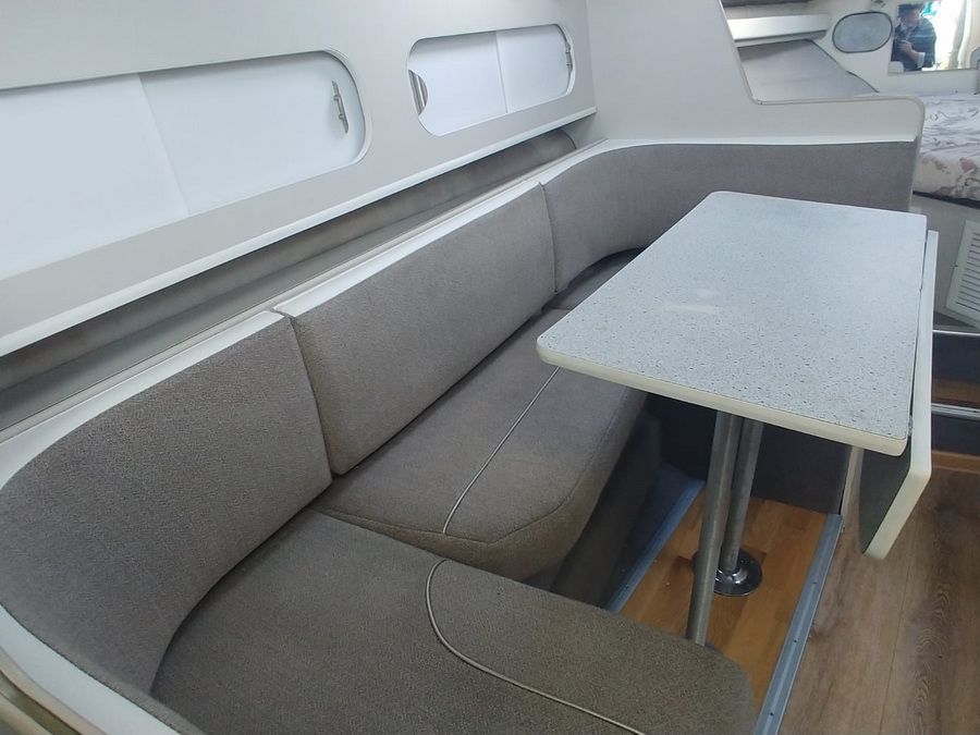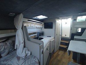 Яхта оборудована кухней, туалетом, спальными местами, системой обогрева и вентиляции, музыкальной системой.