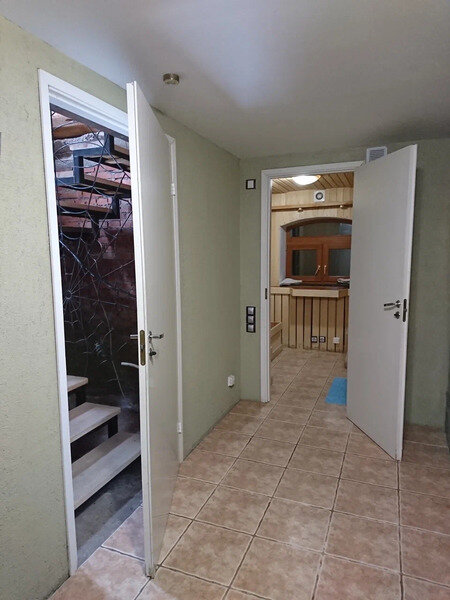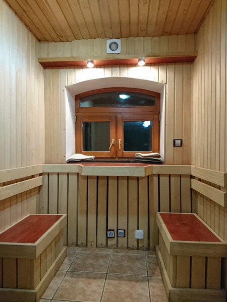 Дом 2-х этажный: первый этаж — хоз. блок, санузел, душевая, сауна (входит в стоимость), второй этаж — две изолированные спальни с двуспальными кроватями, санузел, большая гостиная, совмещенная с кухонной зоной (оснащенная всем необходимым).
