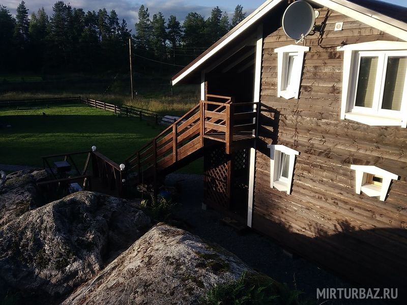 Коттеджи идеально подойдут для семейного или парного отдыха. Дома расположены в тихом месте, у подножия холма, в отдалении от посторонних глаз. Если Вы хотите отдохнуть в тишине, то это идеальный вариант для Вас. Гостевые домики расположены на 2-ой линии от озера, до заливов Ладожских шхер 150 метров.