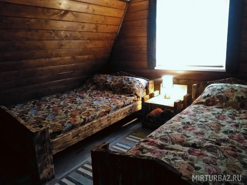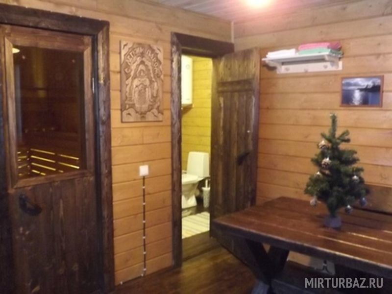 Благодаря удачному расположению тут практически нет ветров и солнечно. Здесь Вы найдете развлечения на любой вкус. Прогуляться по берегу, порыбачить с пирса или с лодки, пособирать грибы и ягоды. Перед домиками есть лужайка для игр (баскетбол, волейбол, дартс, бадминтон). В зимний период склон для ватрушки. Также гостям доступна баня. Площадь домиков 30 и 50 м². В маленьком домике имеется прихожая, санузел, комната с мини кухней, двухъярусной кроватью на 4 человека и открытая веранда со столом. В наличии мангал и казан.